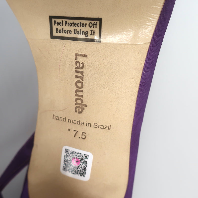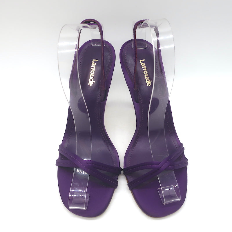 Larroude Annie Slingback Sandals Purple Satin Size 7.5 Open Toe Heels NEW