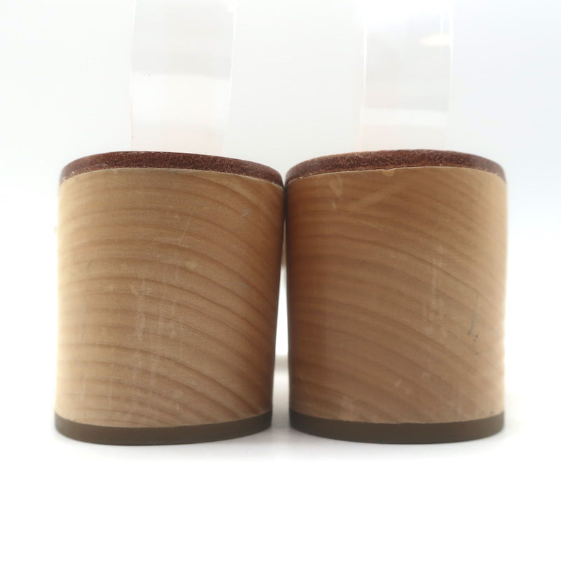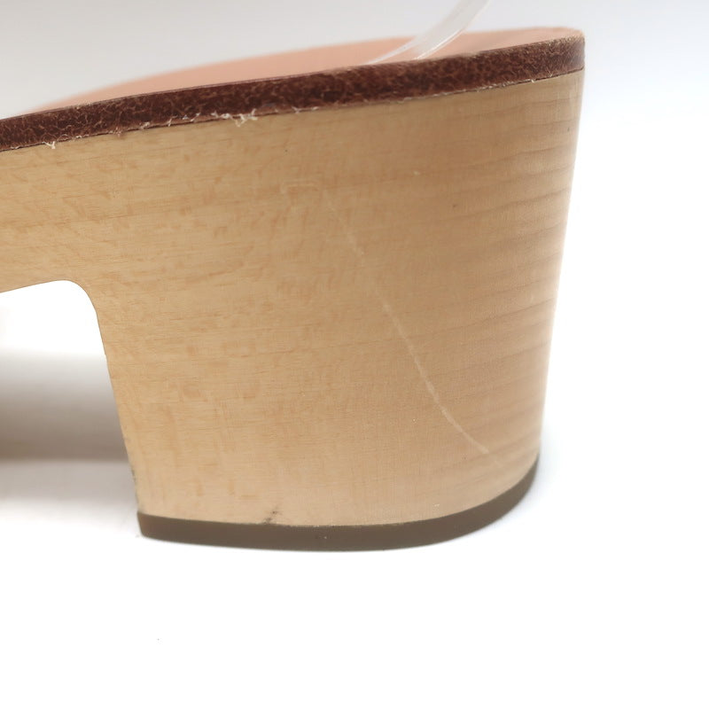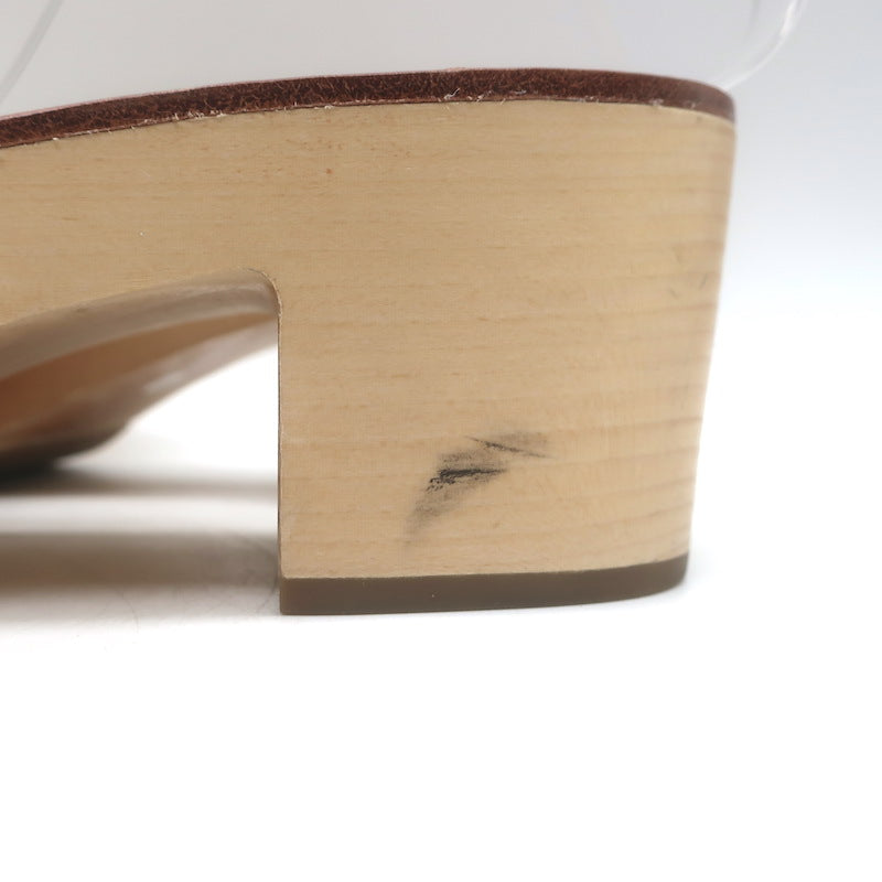 Pre-loved. Scuffs and scratches throughout wood. Gray smudges on insoles. Does NOT come with box or dust bag. Retails for $295!