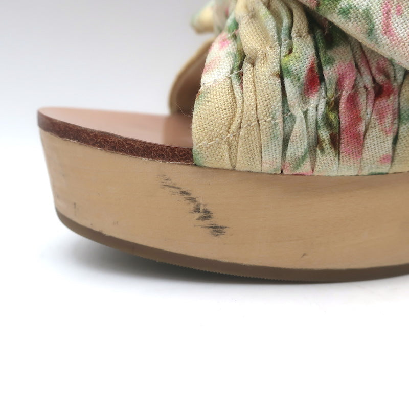 Loeffler Randall Regina Bow Clog Sandals Cream Floral Print Canvas Size 8