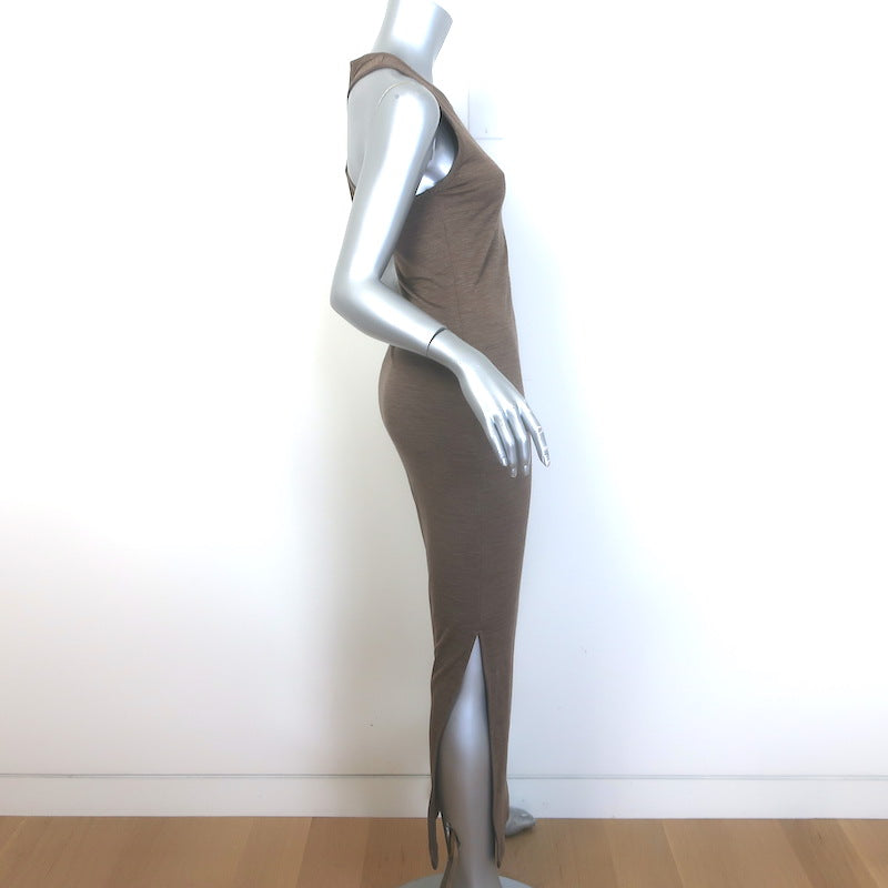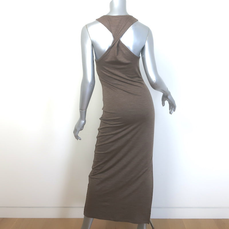 Loewe Anagram Twist-Back Maxi Dress Brown Stretch Wool Jersey Size Small