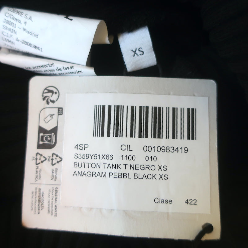 Loewe Ribbed Knit Midi Tank Dress Black Cotton Size Extra Small NEW