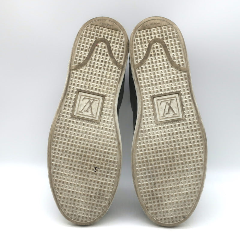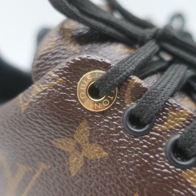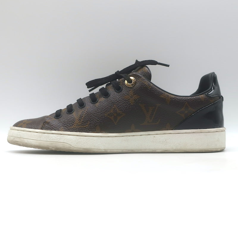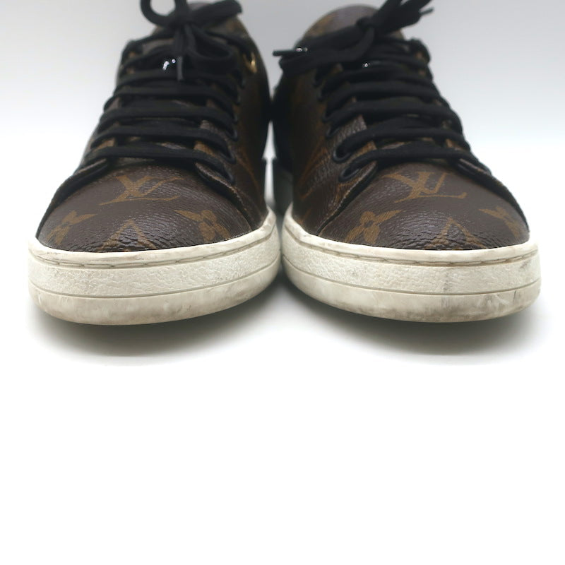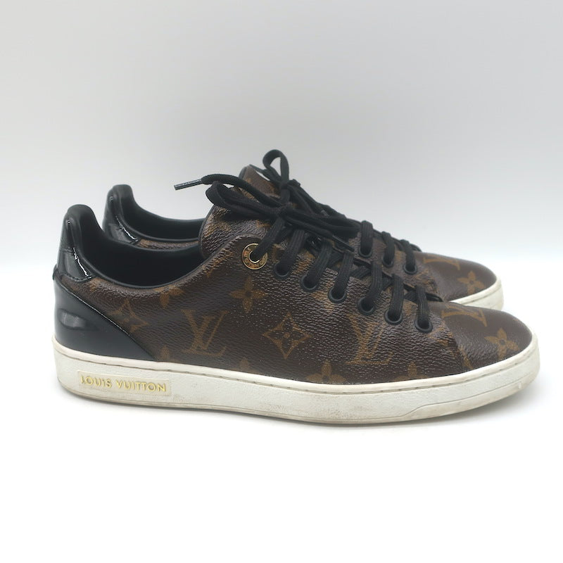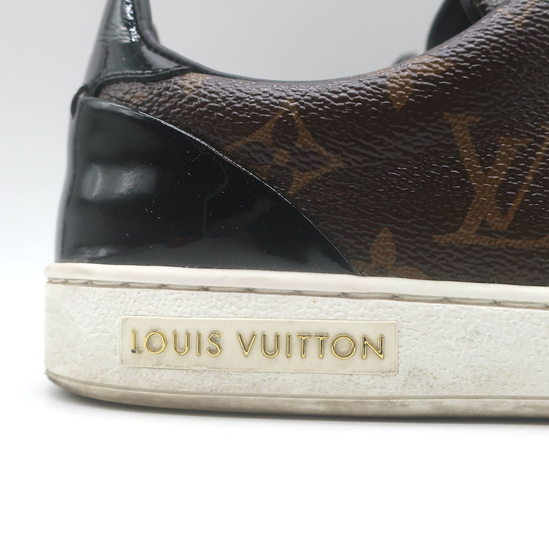 Louis Vuitton FrontRow Sneakers Brown Monogram Canvas & Black Patent Size 37.5