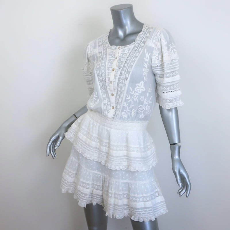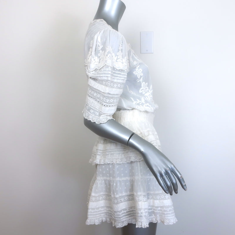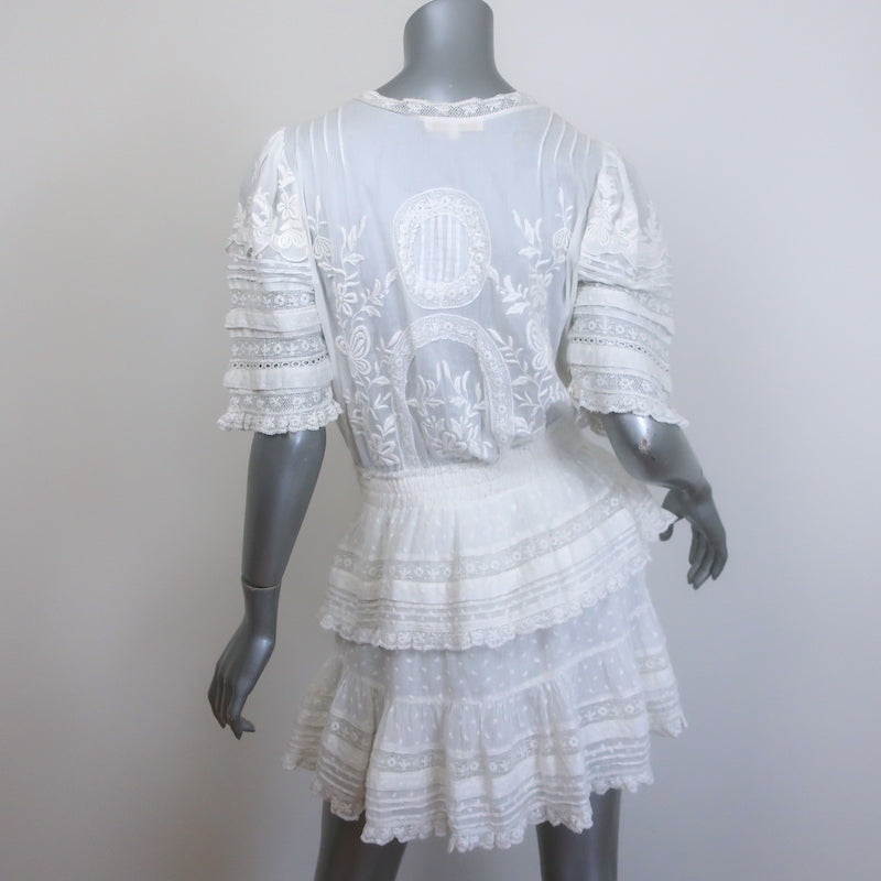 LoveShackFancy Quincy Floral Embroidered Mini Dress White Cotton Size Medium