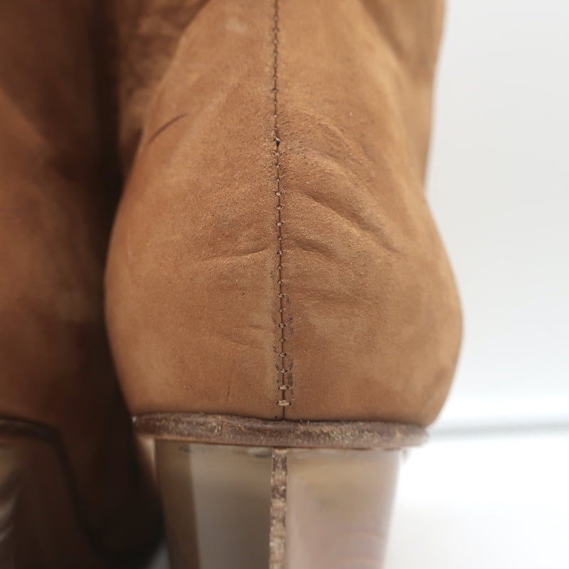 Prada Zip-Back Ankle Boots Taupe Suede Size 38.5
