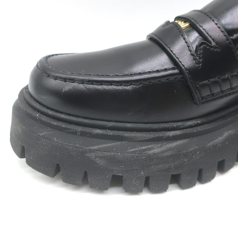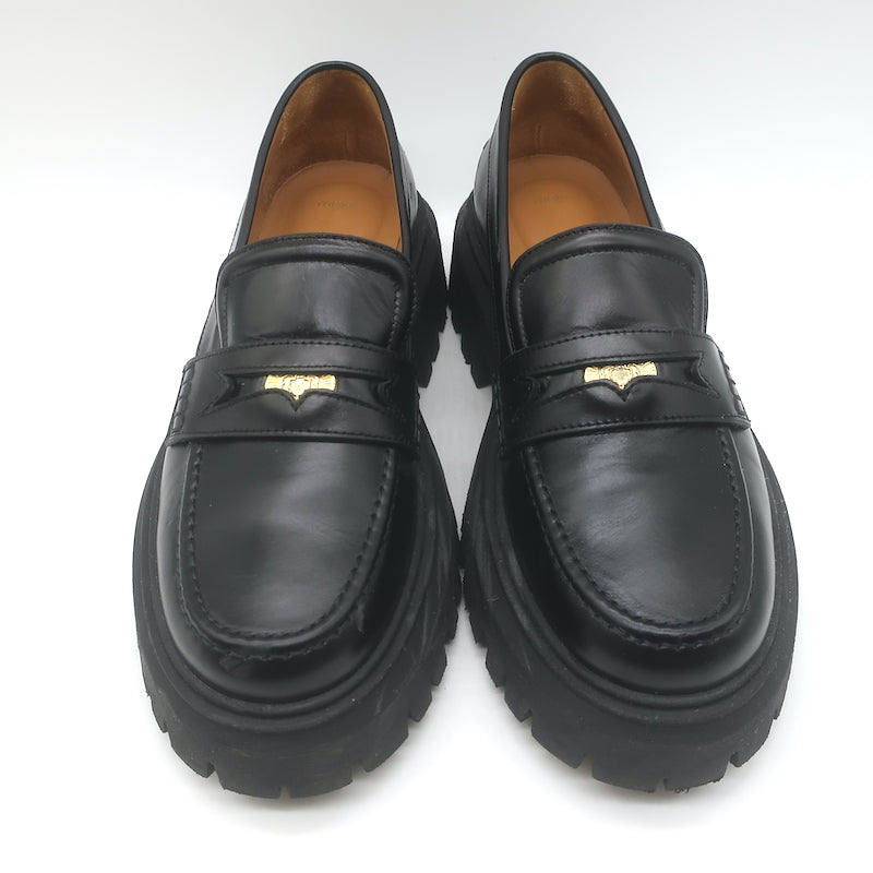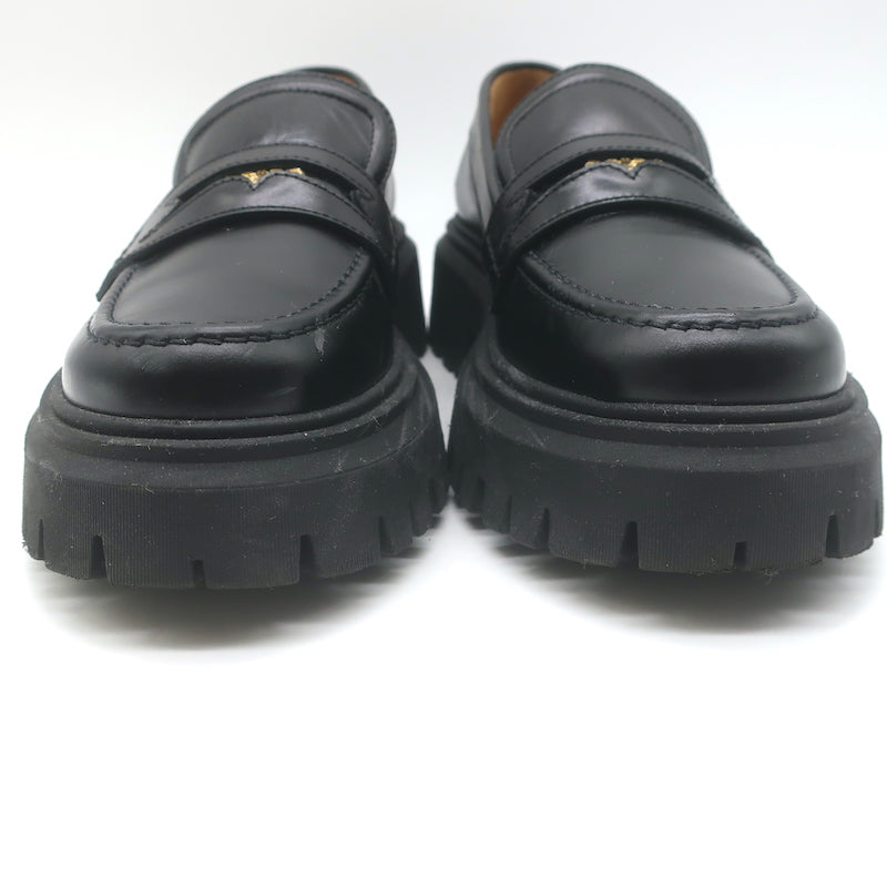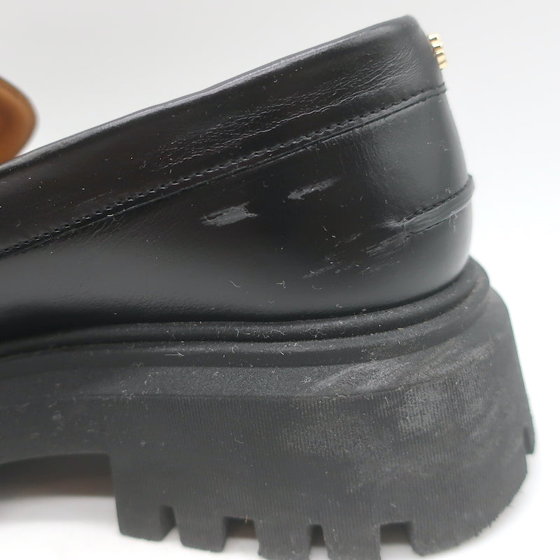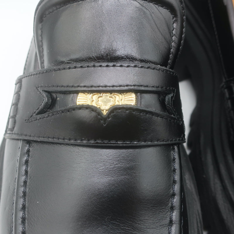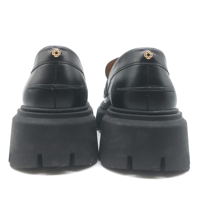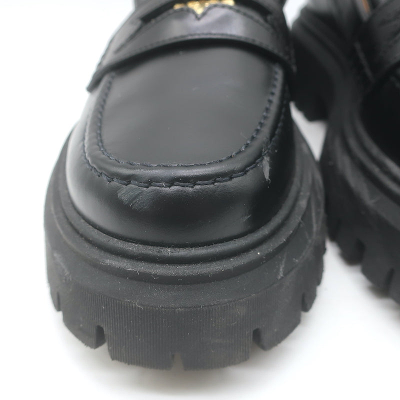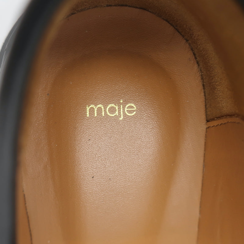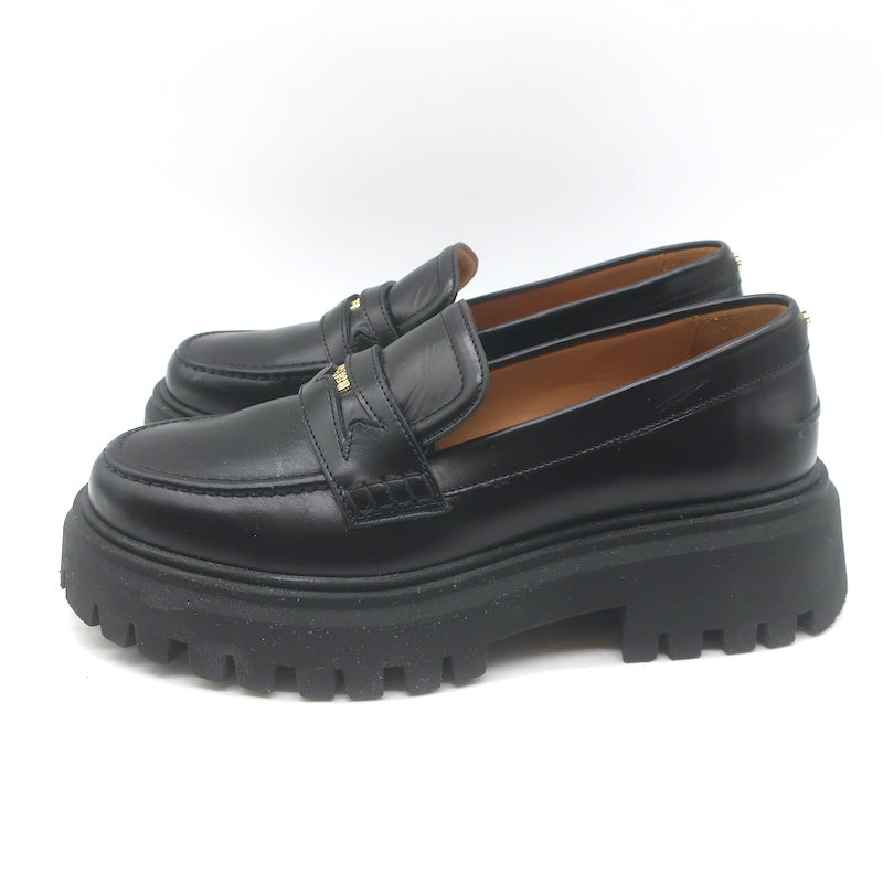 Maje Medallion Platform Penny Loafers Black Leather Size 39