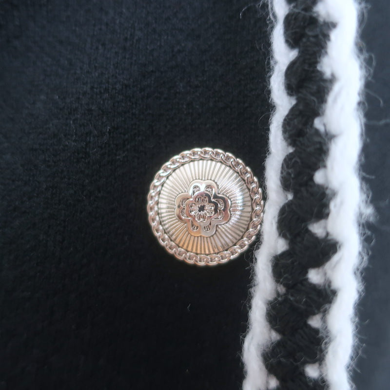 Vintage Giorgio Armani Buttoned Houndstooth-Trim Sweater Black Size 42