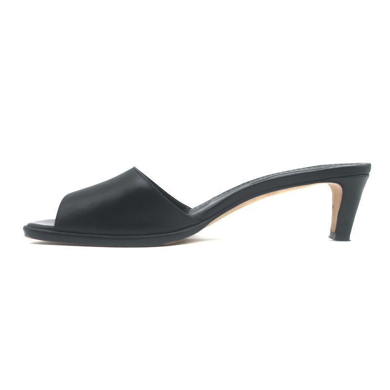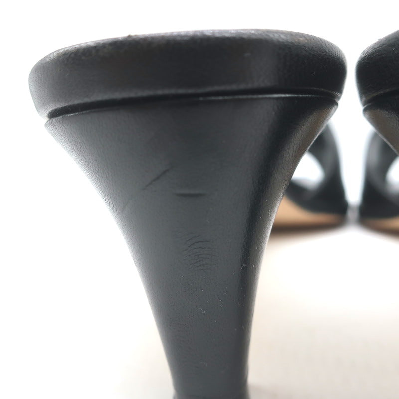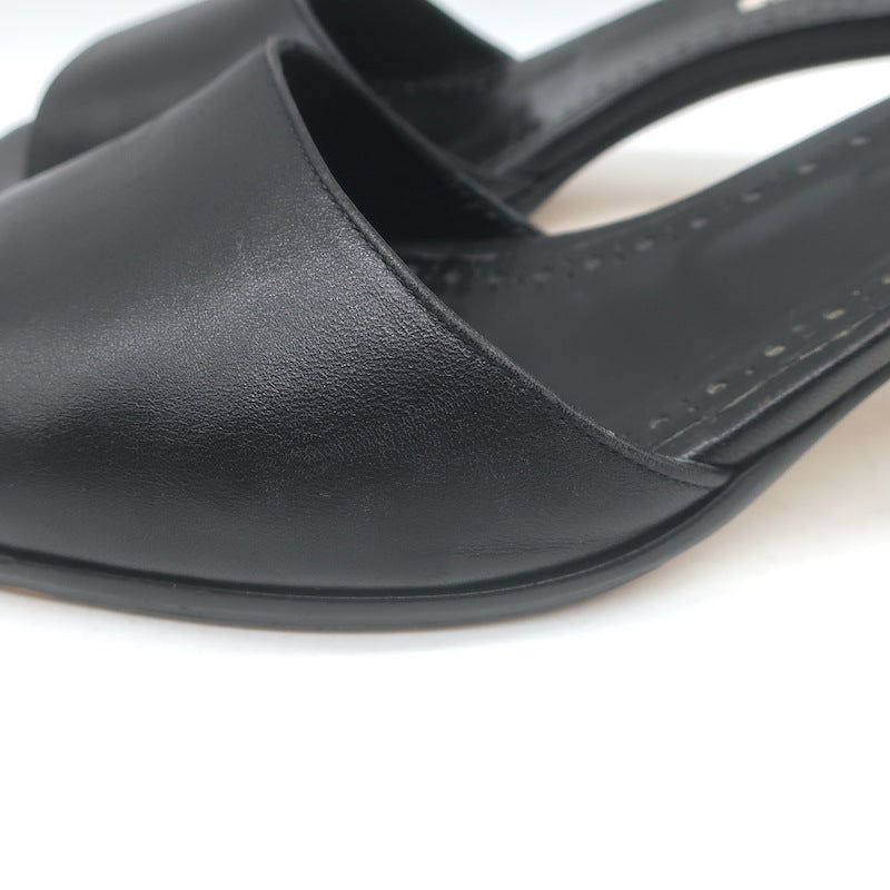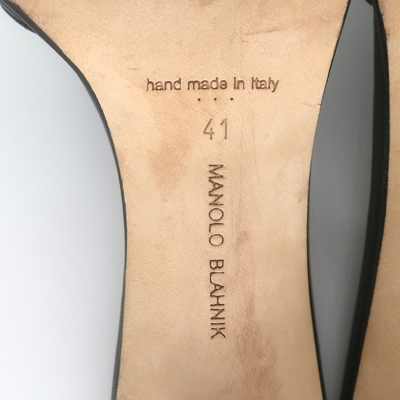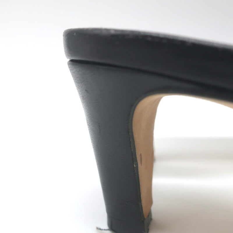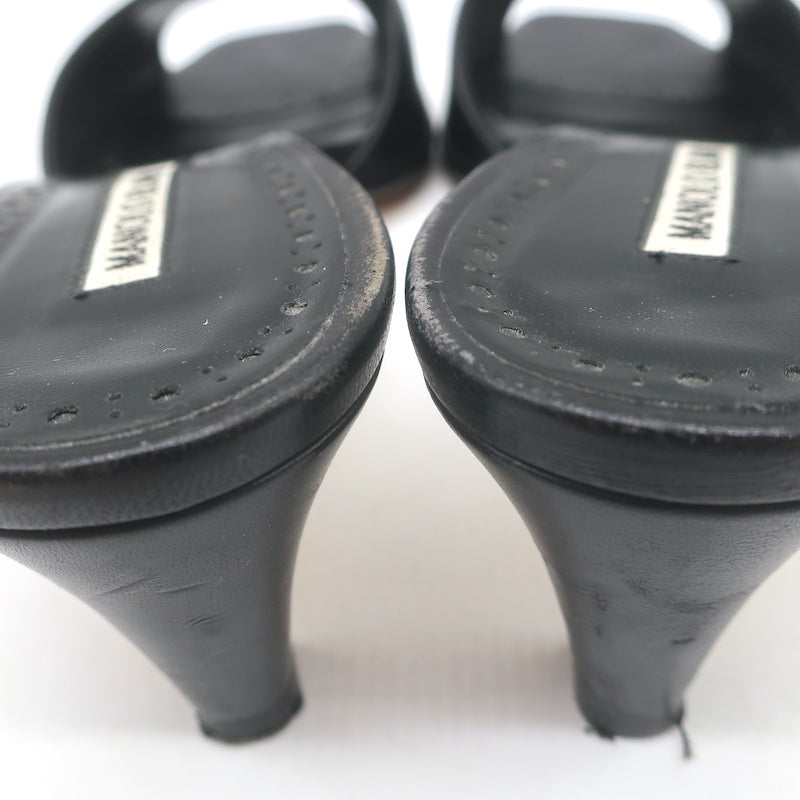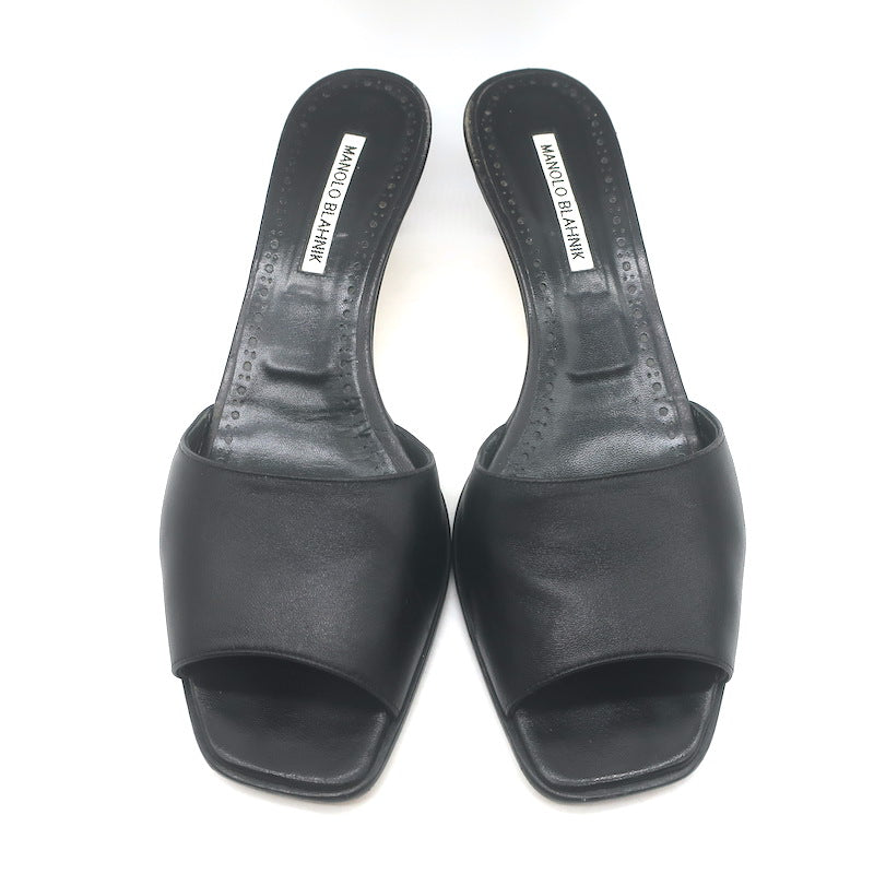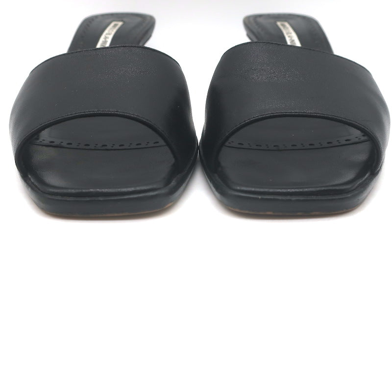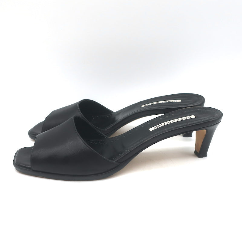 Manolo Blahnik Araspemu Mules Black Leather Size 41 Kitten Heel Slide Sandals