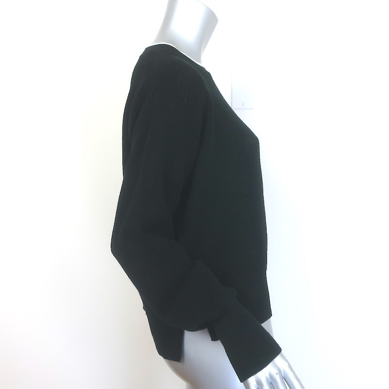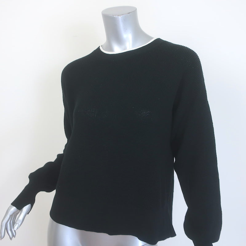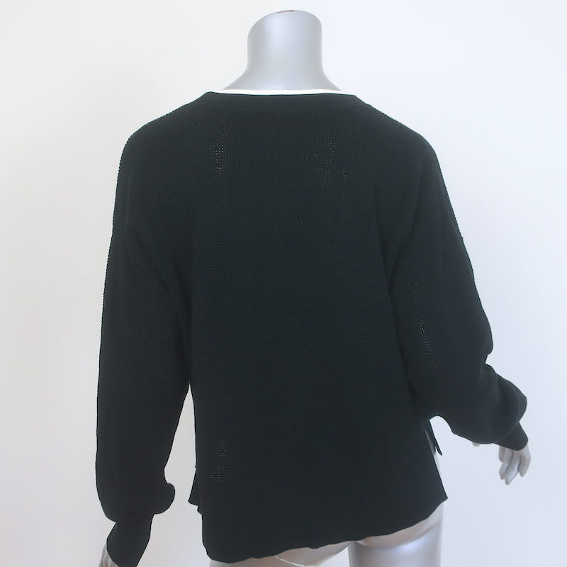 Margaret O'Leary Whitney Waffle Knit Crewneck Sweater Black Cotton Size Small