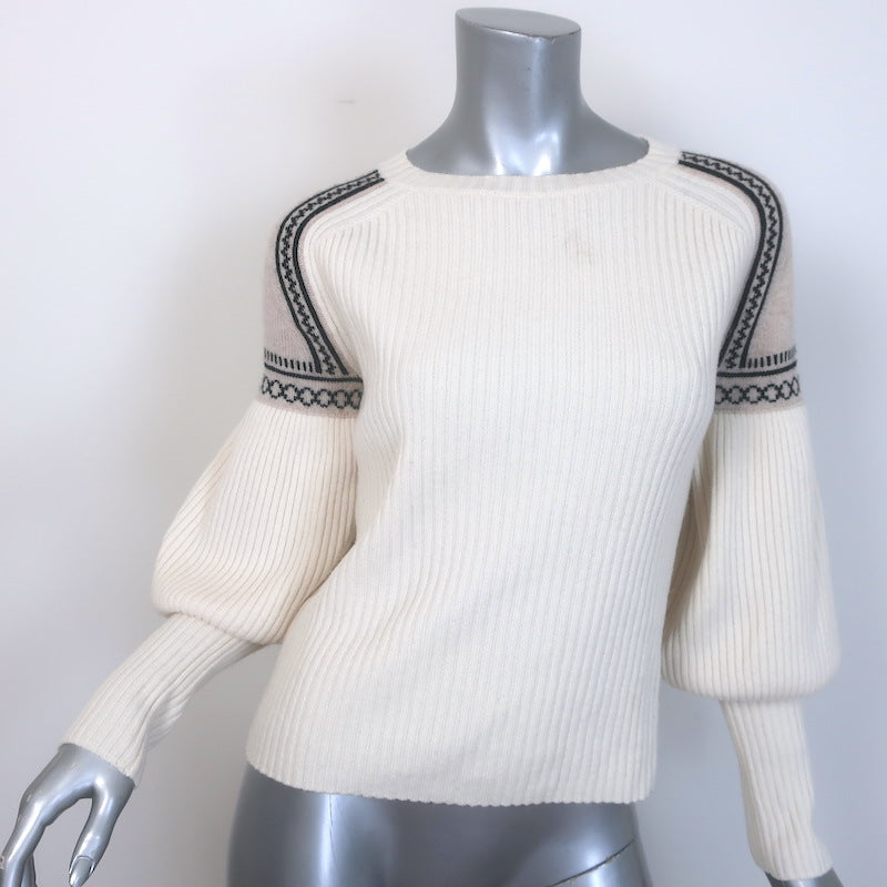 Max Mara Cosetta Bishop Sleeve Sweater Cream Wool-Cashmere Rib Knit Size Medium