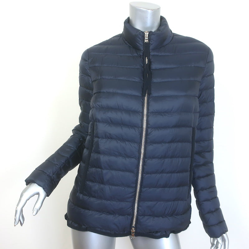 Moncler Blein Ruffled-Hem Down Puffer Jacket Dark Navy Size 3