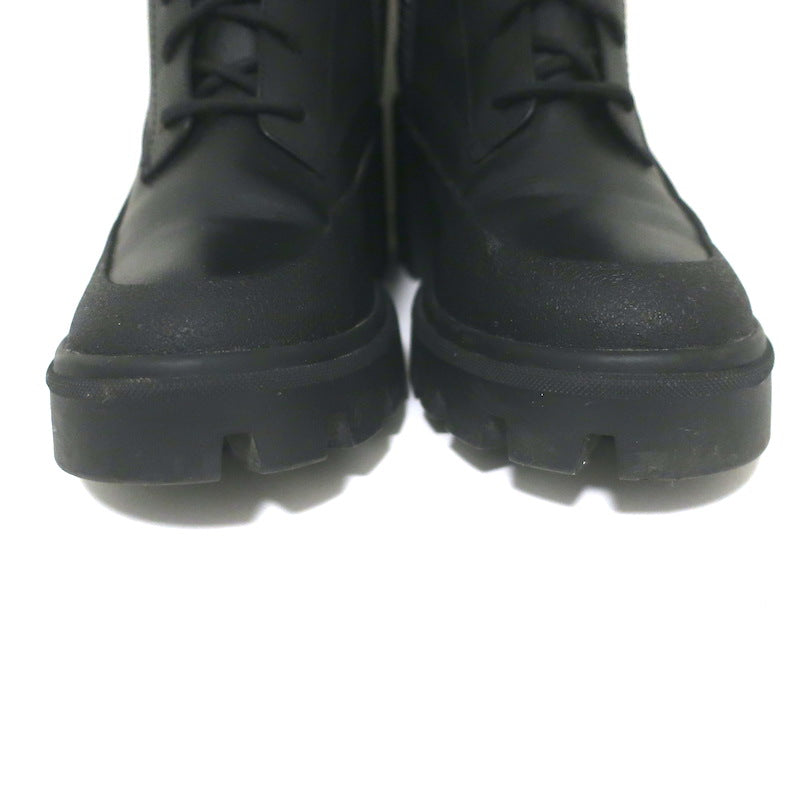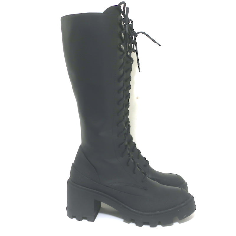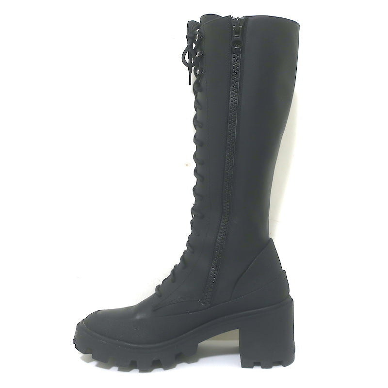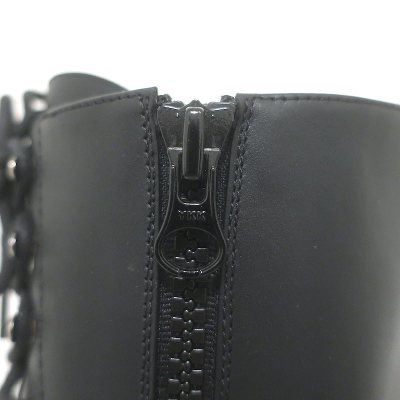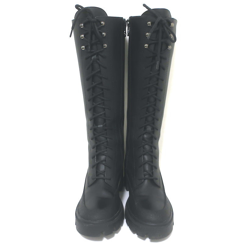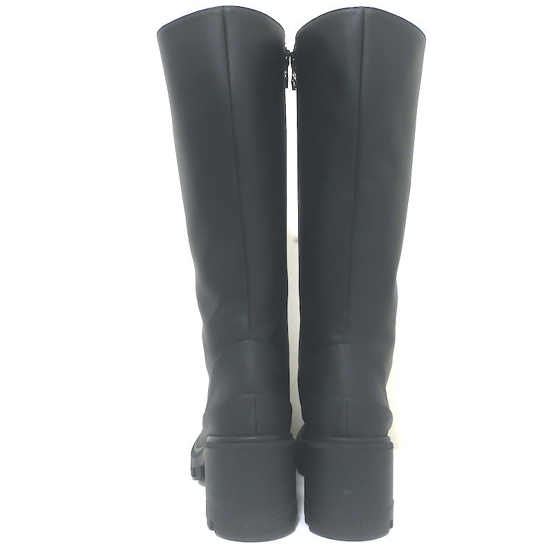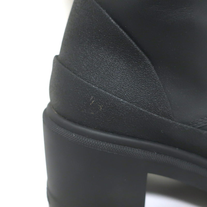 Moncler C Lug Sole Lace-Up Knee High Boots Black Leather Size 39