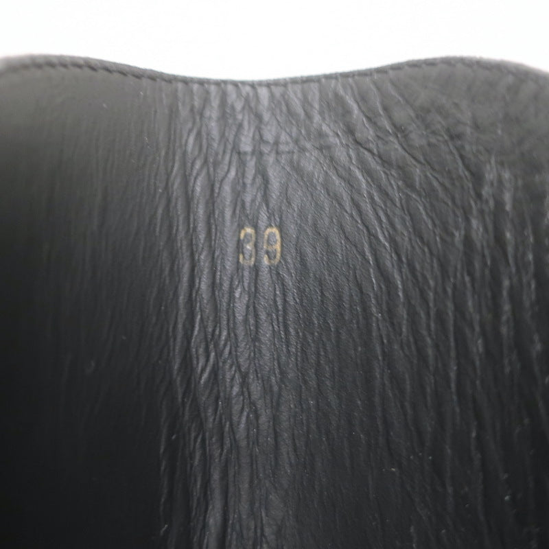 Hermes Legend Ankle Strap Wedge Sandals Black Leather Size 38.5