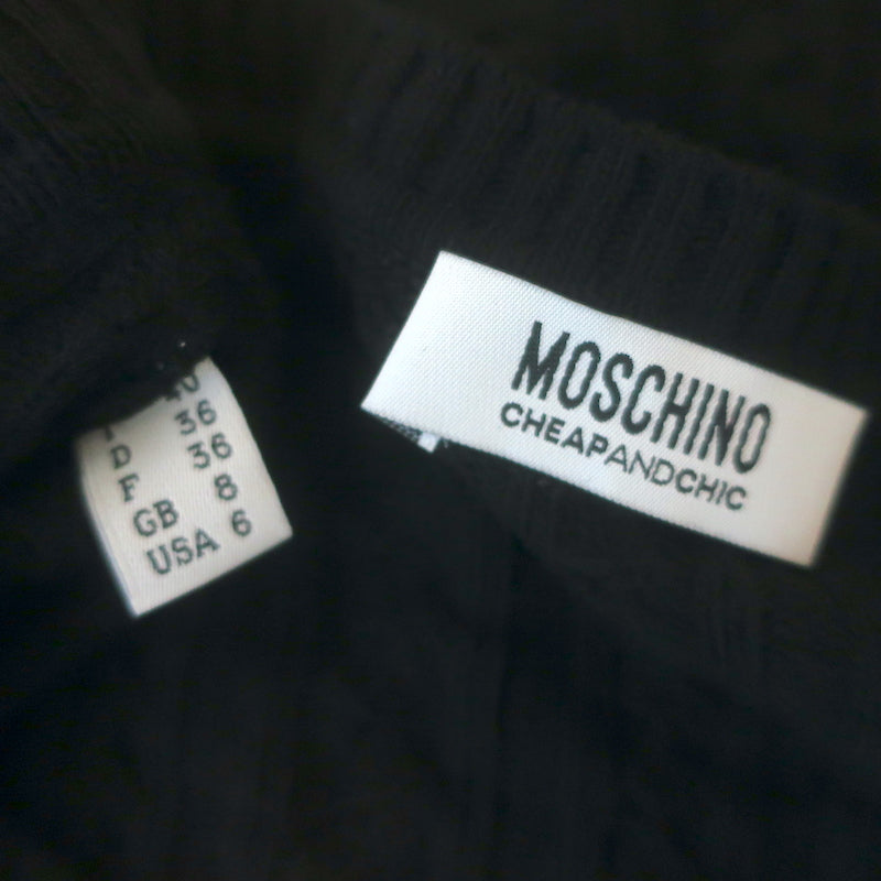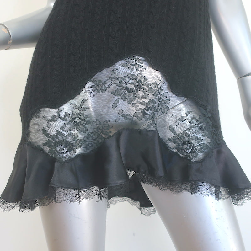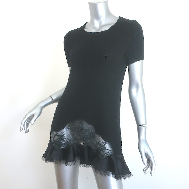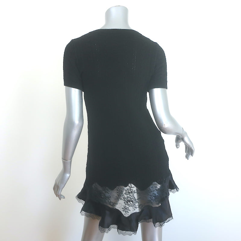 Moschino Cheap and Chic Lace-Inset Ruffled Tunic Dress Black Knit Size US 6