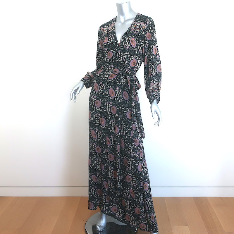 Natalie Martin Kate Maxi Wrap Dress Black Floral Print Size Small