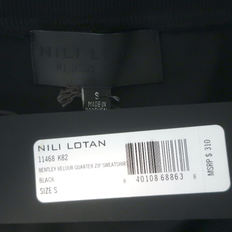 Nili Lotan Bentley Velour Quarter Zip Sweatshirt Black Size Small NEW