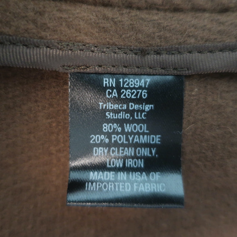 Gently worn. Great condition. No flaws. Missing leather belt. Retails for $960! 80% wool, 20% nylon; 95% wool, 5% cashmere