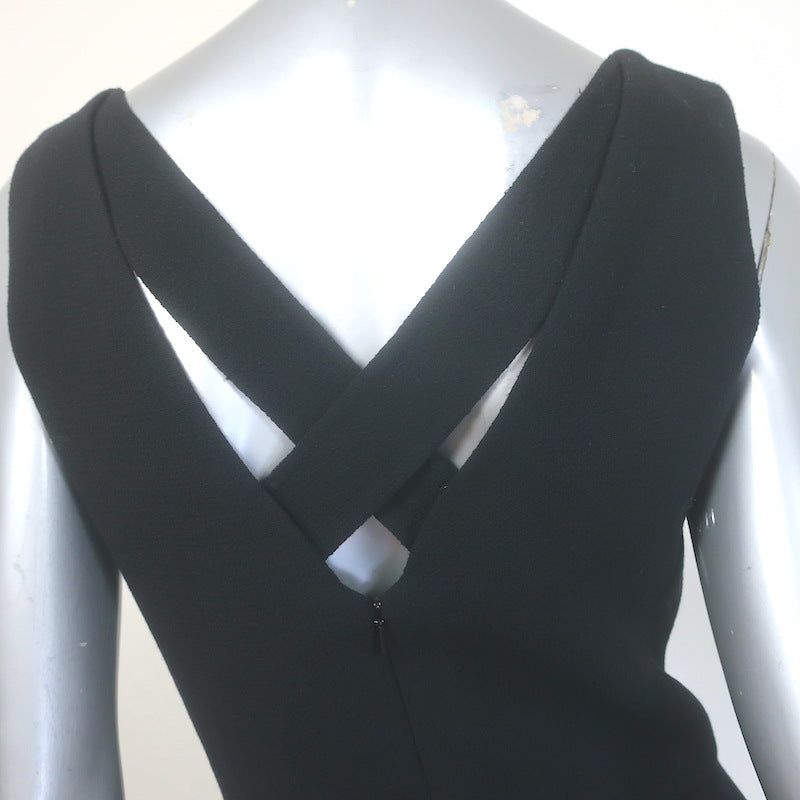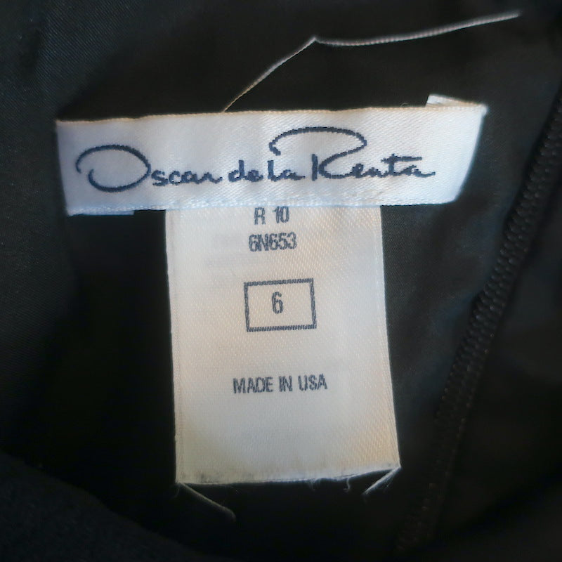 Oscar de la Renta Crisscross-Back Bubble Hem Dress Black Wool Crepe Size 6