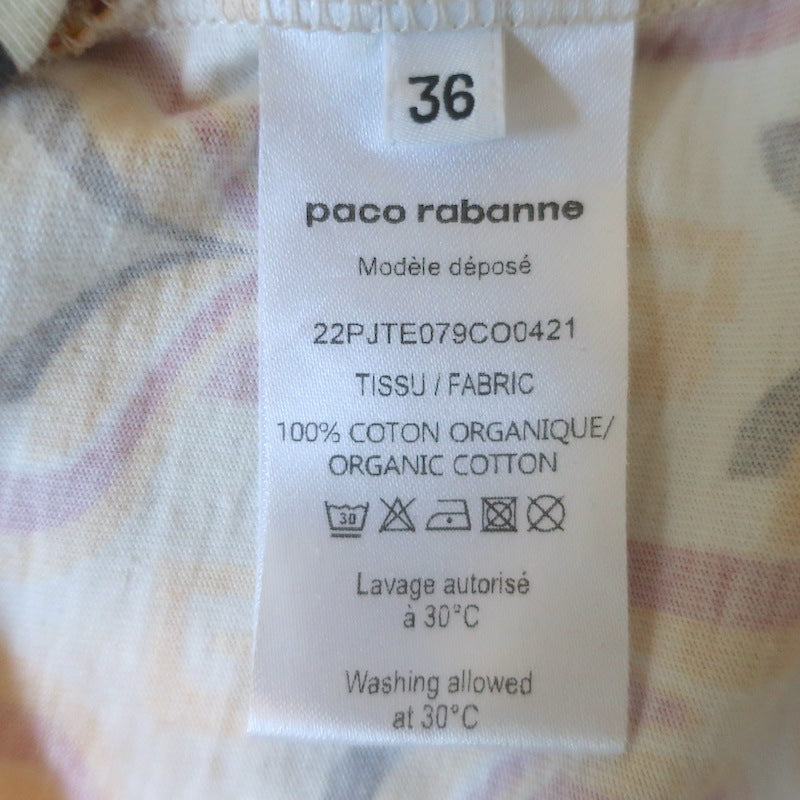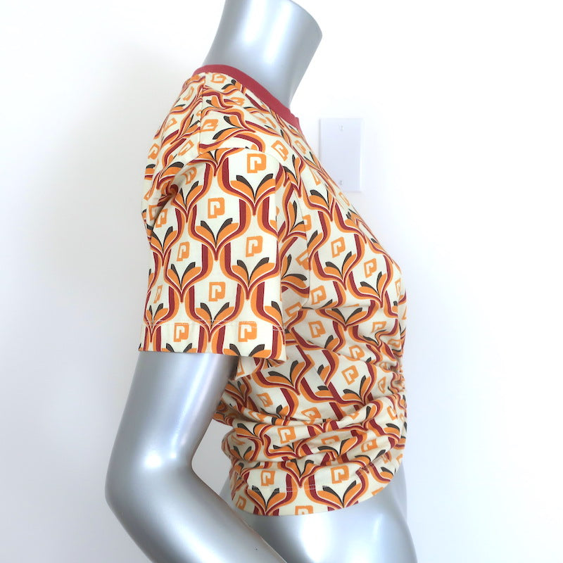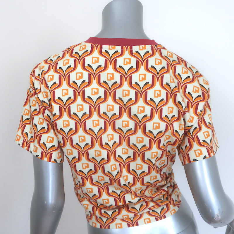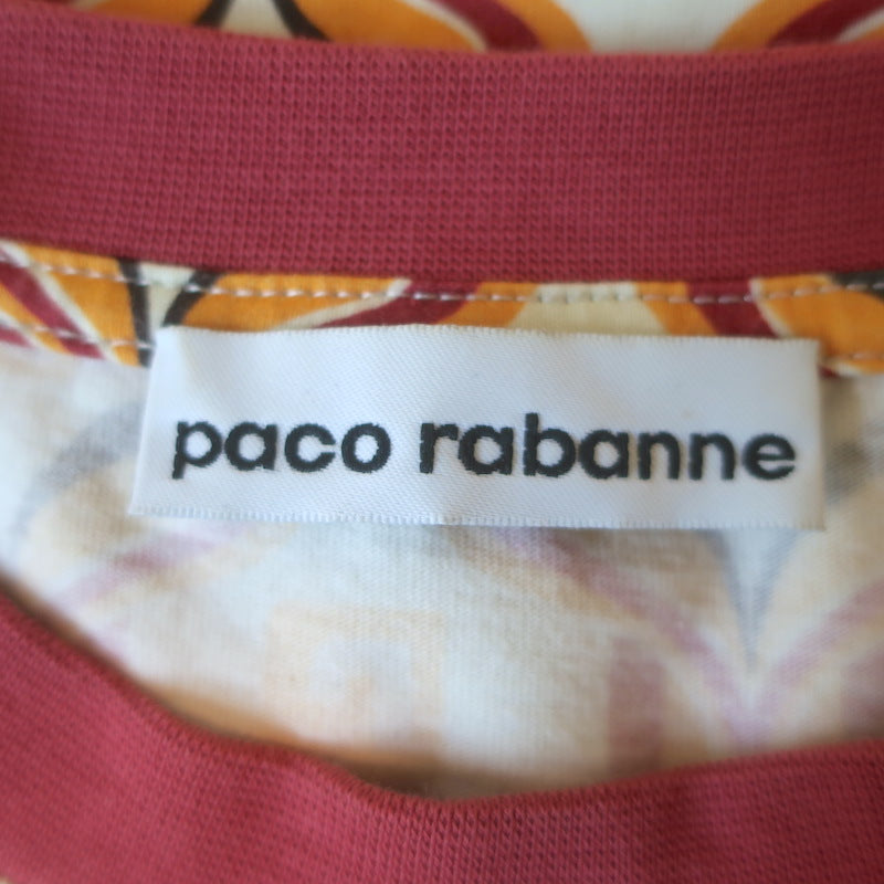 Paco Rabanne Tapestry Gathered U-Ring Cropped T-Shirt Ivory/Red Cotton Size 36 Measurements