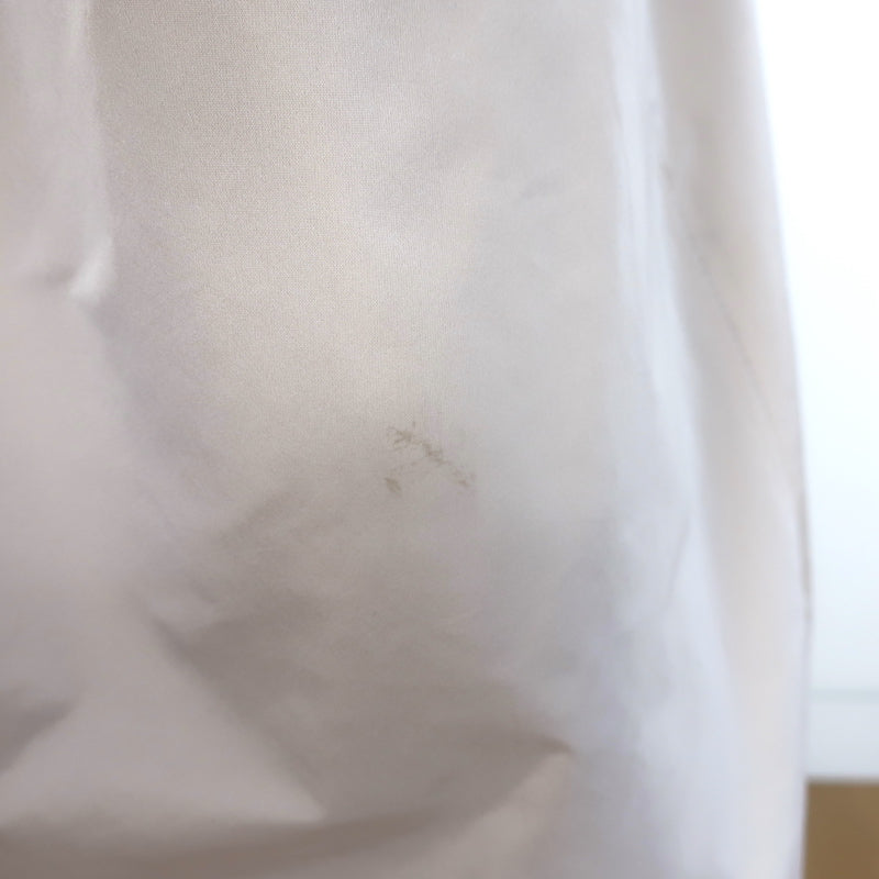 Pre-loved. Small yellow spot on left tie and a very faint spot on front left shoulder. -**-