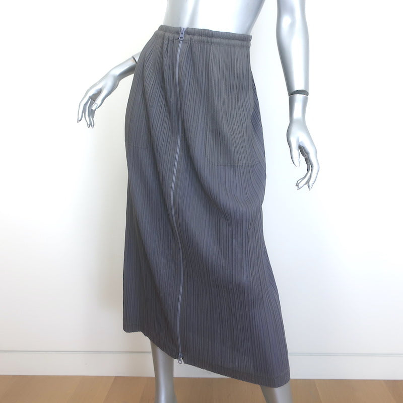 Pleats Please Issey Miyake Zip-Up Midi Skirt Gray Size 1