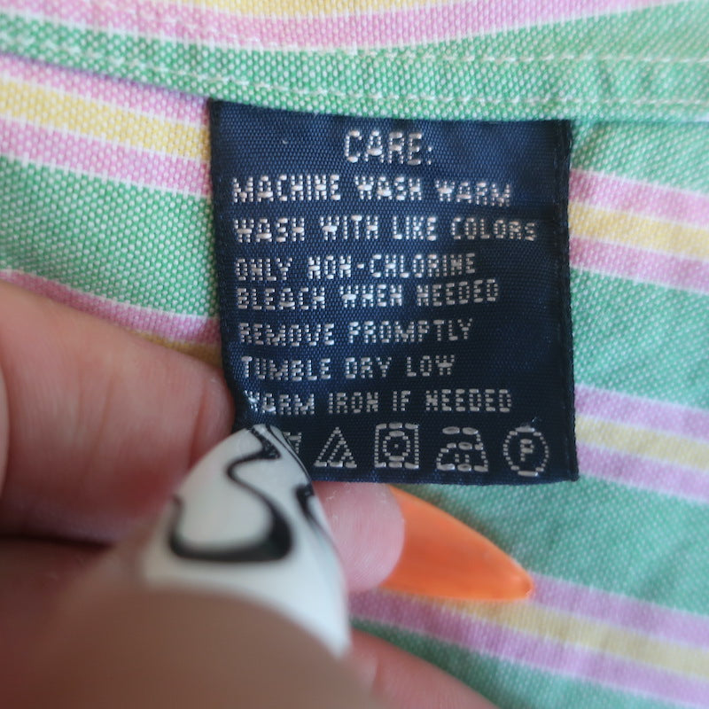 Polo Ralph Lauren Striped Slim Fit Button Down Shirt Green/Pink/Yellow Size 2