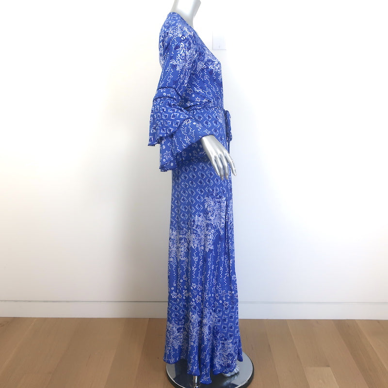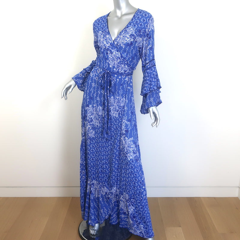 Poupette St Barth Elise Maxi Wrap Dress Blue Butterfly Batik Print Size Large