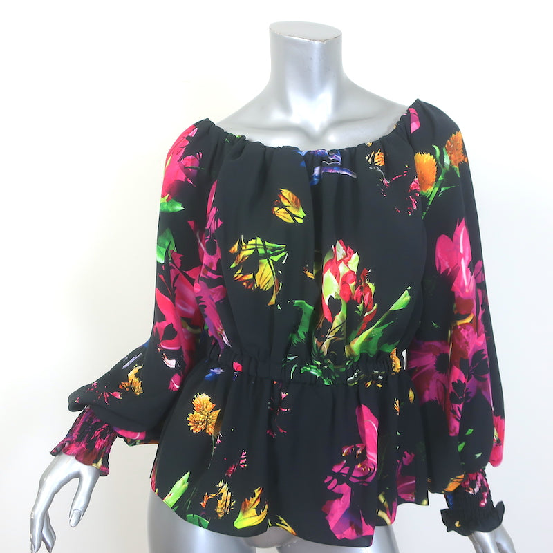 Prabal Gurung Off the Shoulder Blouson-Sleeve Top Black Floral Print Size 6