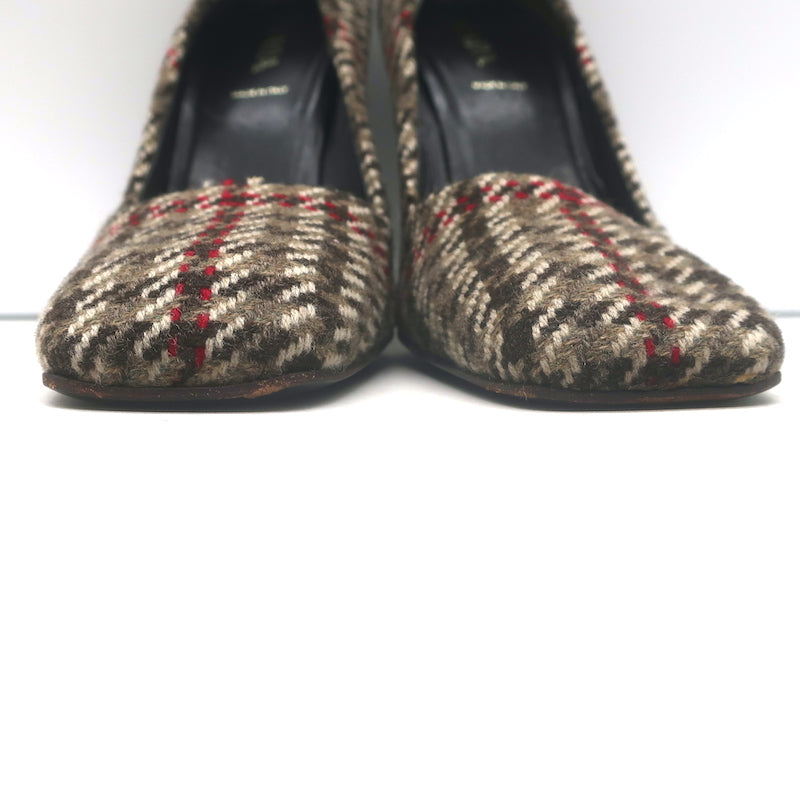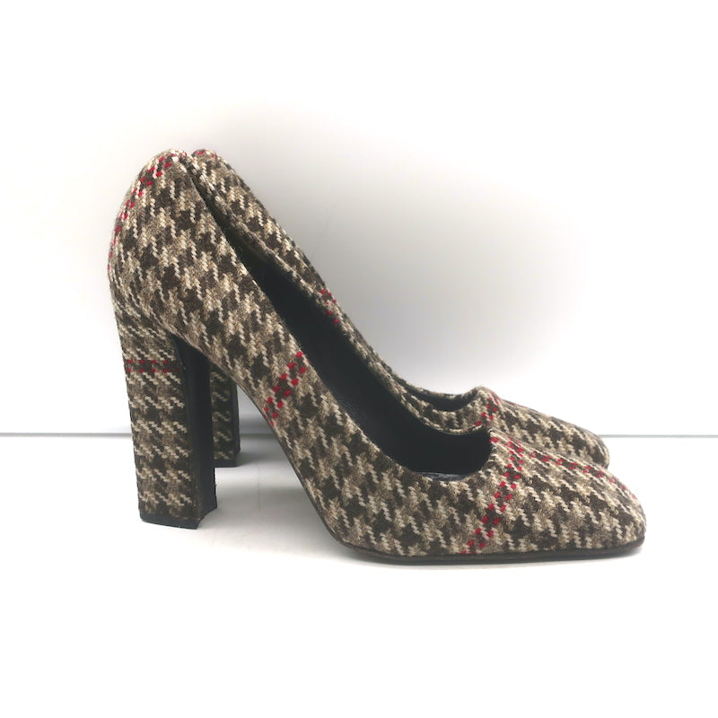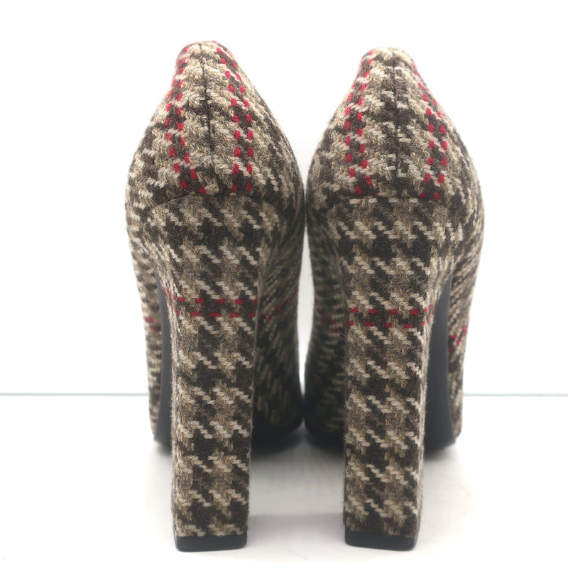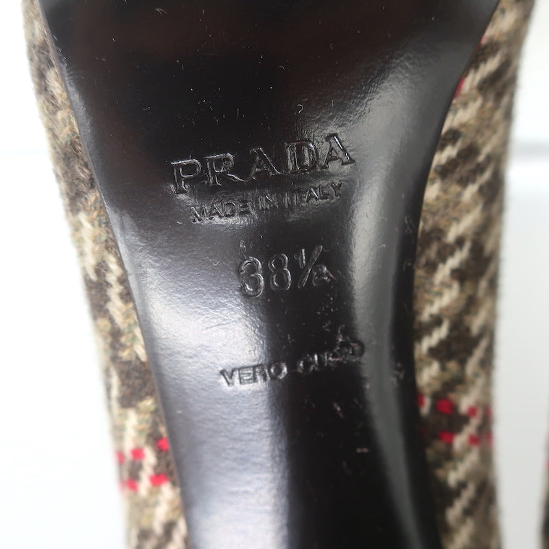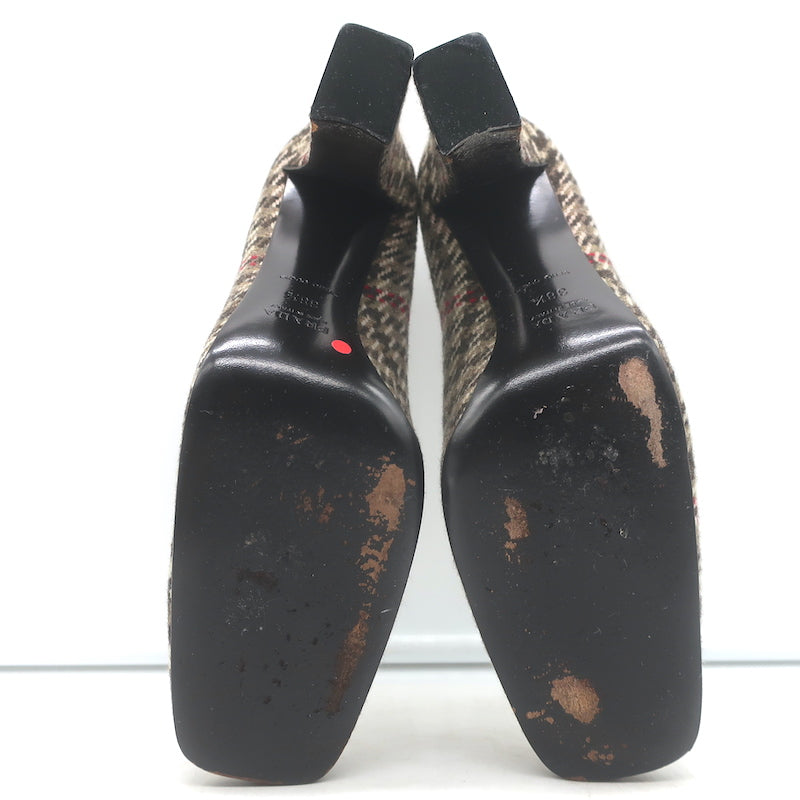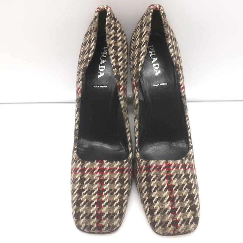 Prada Houndstooth Tweed Square Toe Pumps Brown Size 38.5