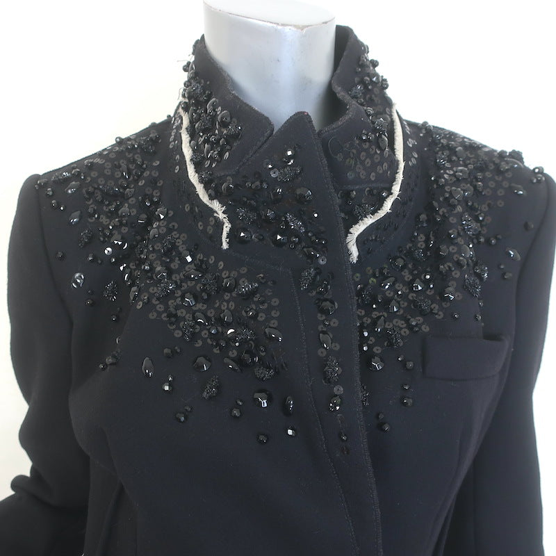 Prada Jeweled-Collar Coat Black Wool Felt Size 40