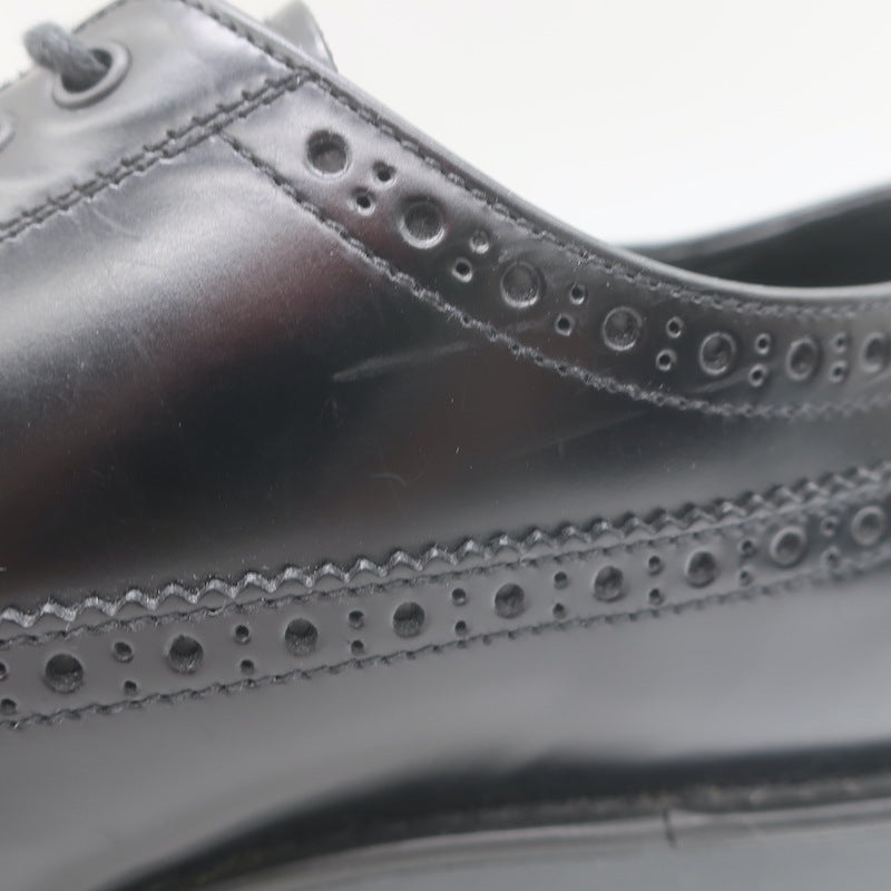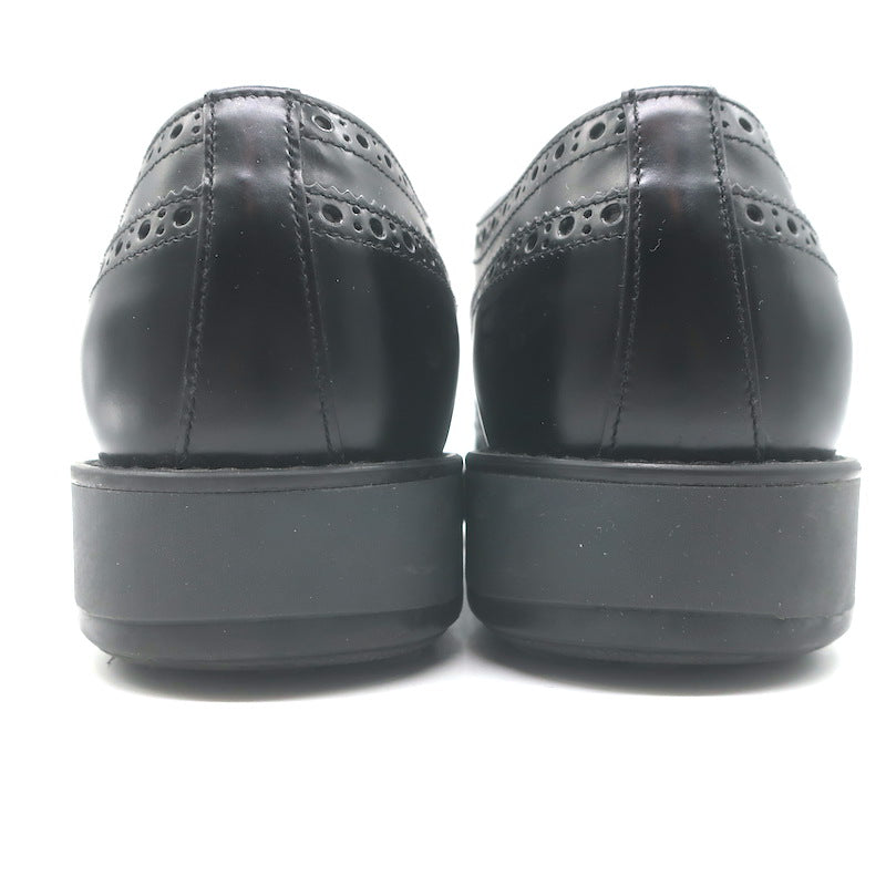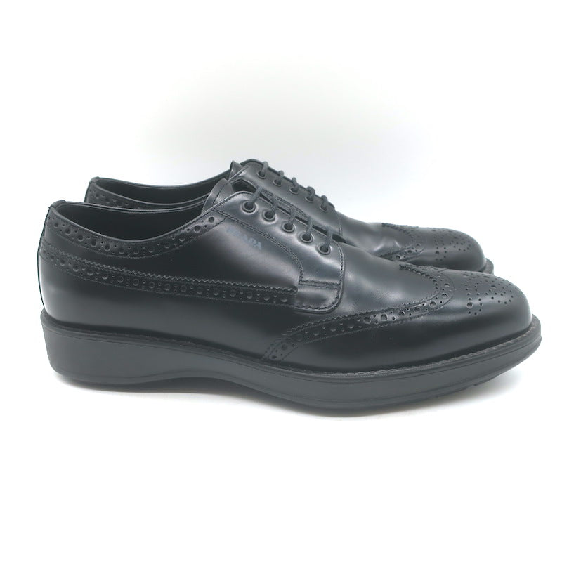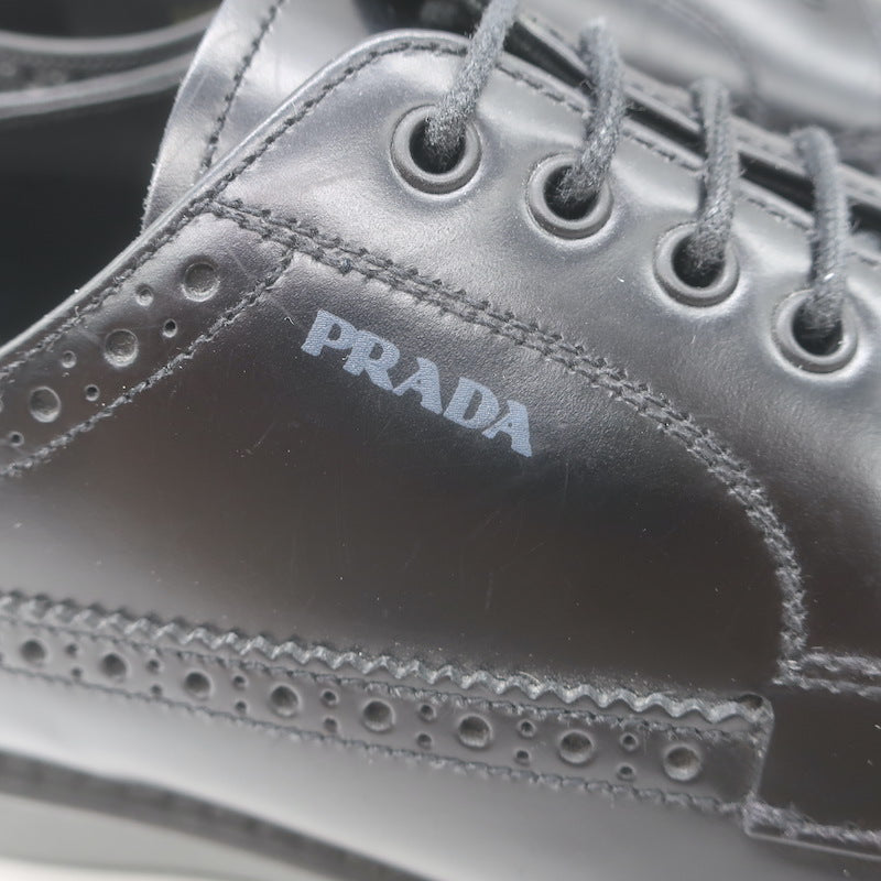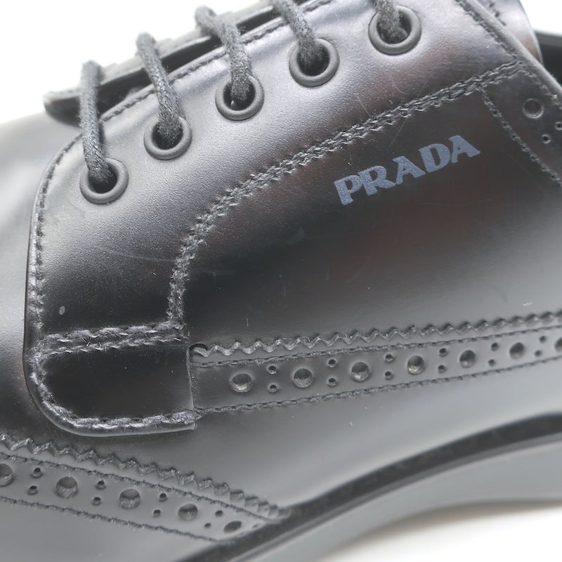 Prada Lace-Up Wingtip Brogue Shoes Black Brushed Leather Size 7