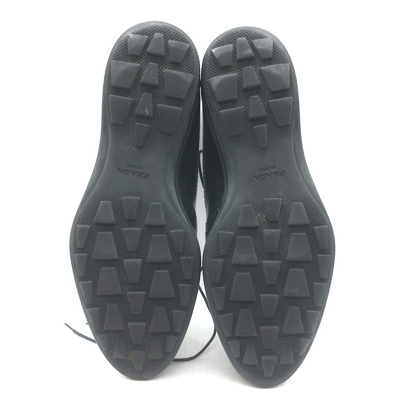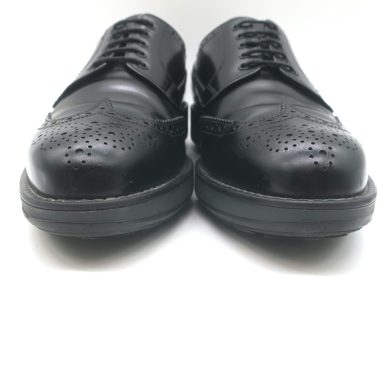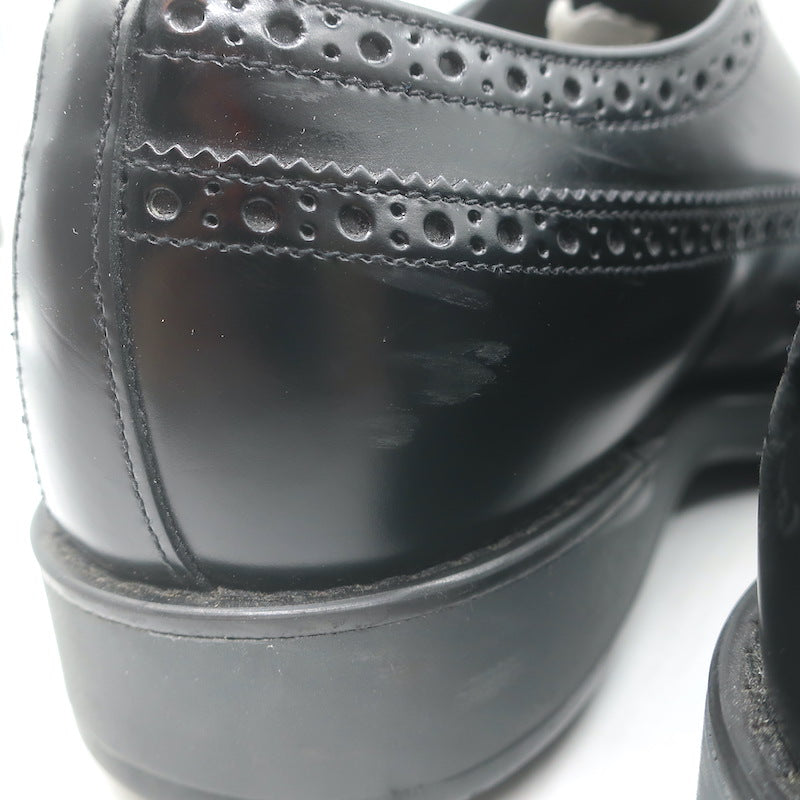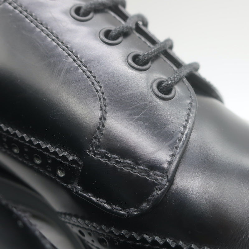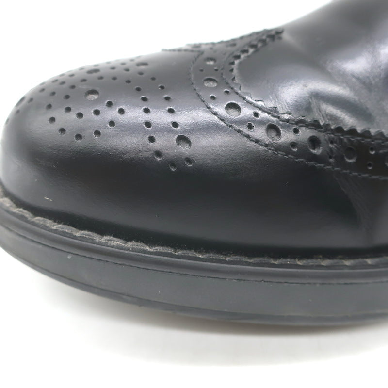 Prada Lace-Up Wingtip Brogue Shoes Black Brushed Leather Size 7