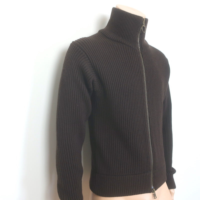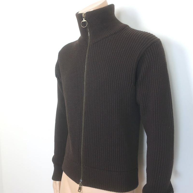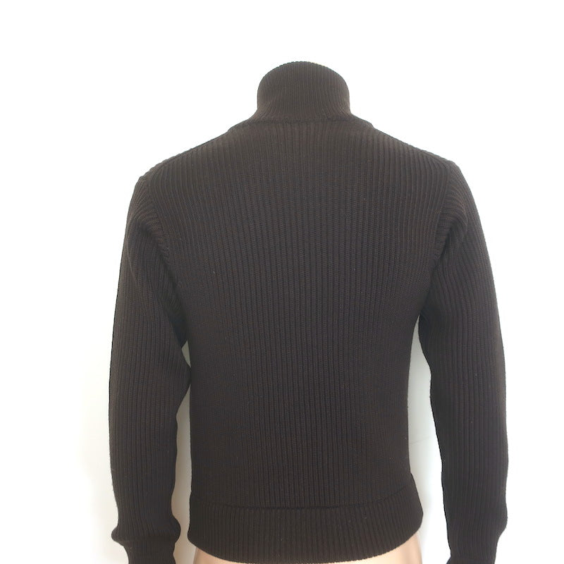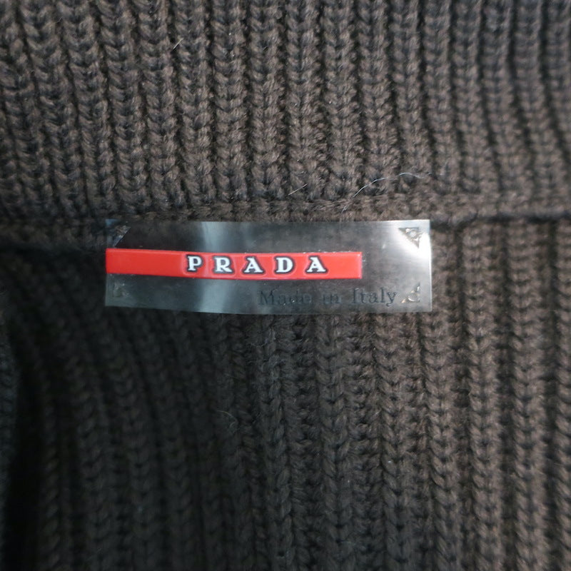 Prada Ribbed Knit Zip-Up Cardigan Sweater Dark Brown Wool Size 50