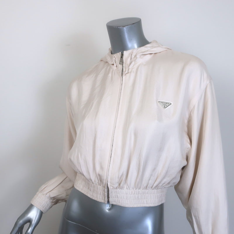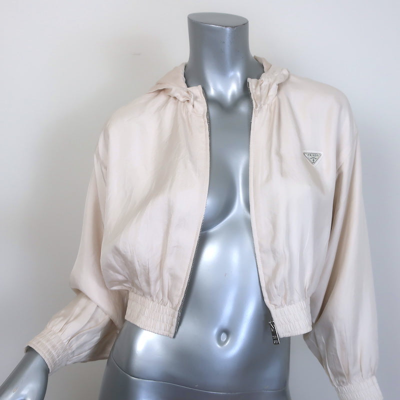 Prada Silk Twill Hooded Blouson Jacket Ivory Size 40