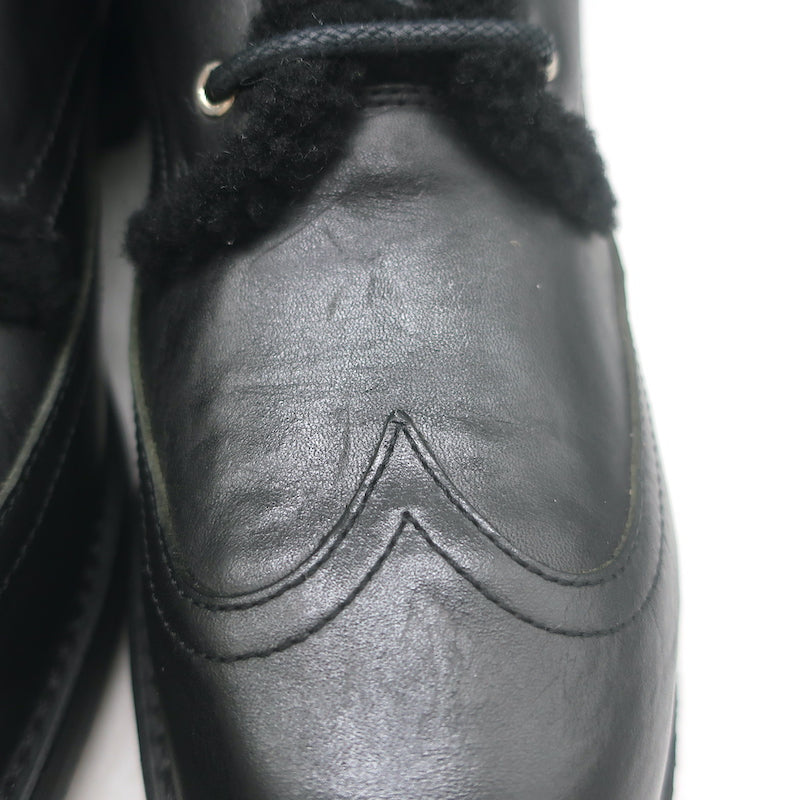 Pre-loved. Scuffs and smudges throughout leather and rubber. Wear on toes and along edges of ankles. Smudges on laces and insoles. A...