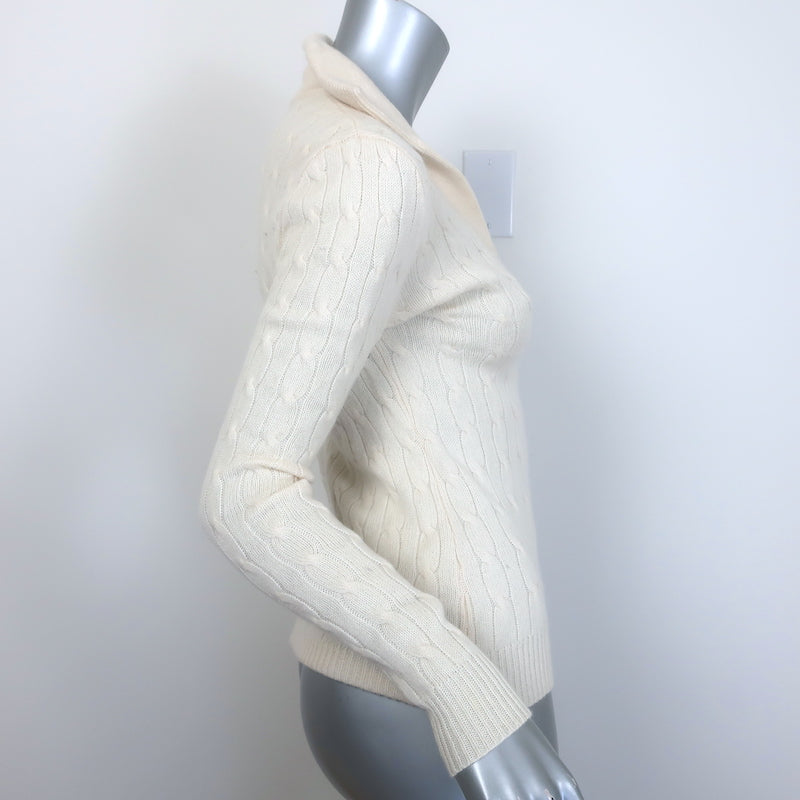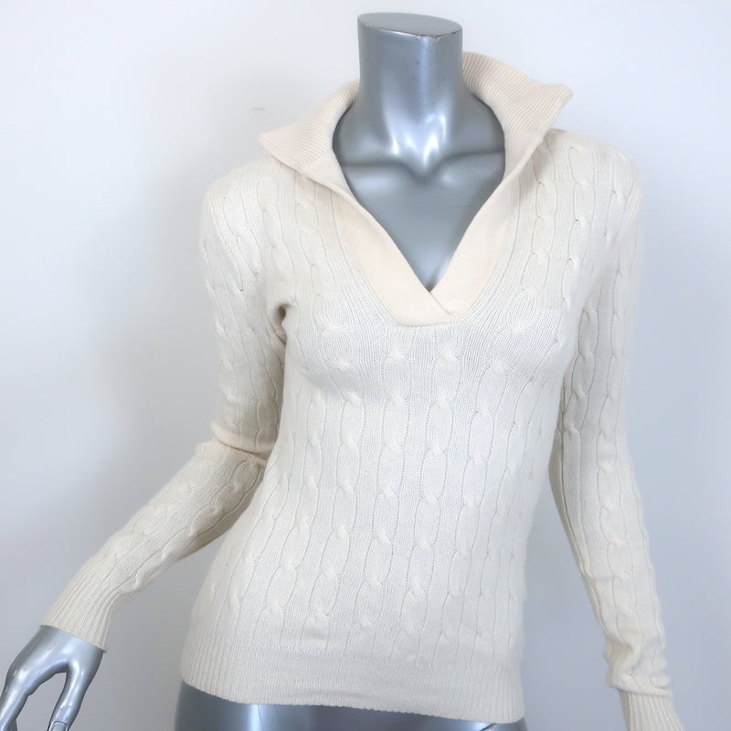Ralph Lauren Black Label Cable Knit Cashmere Collared Sweater Cream Size Small