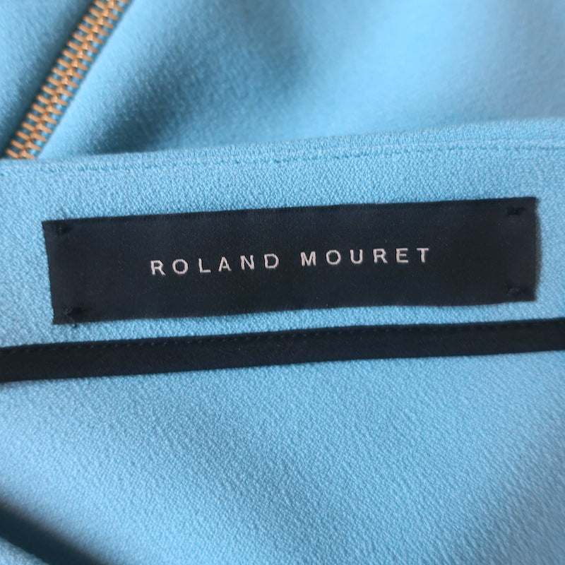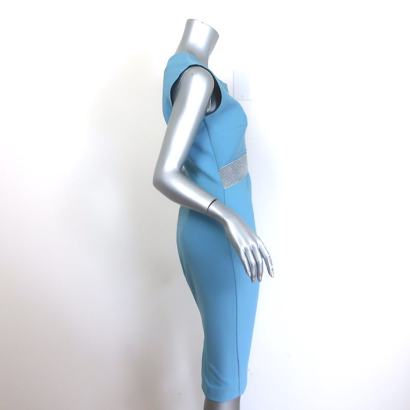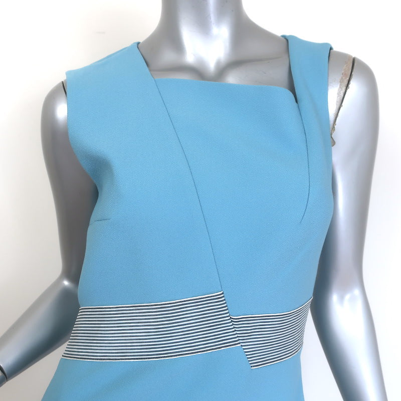 Roland Mouret Striped-Band Asymmetric Sheath Dress Blue Stretch Crepe Size US 6