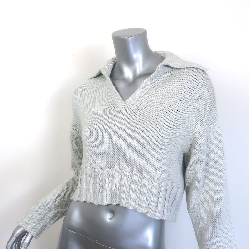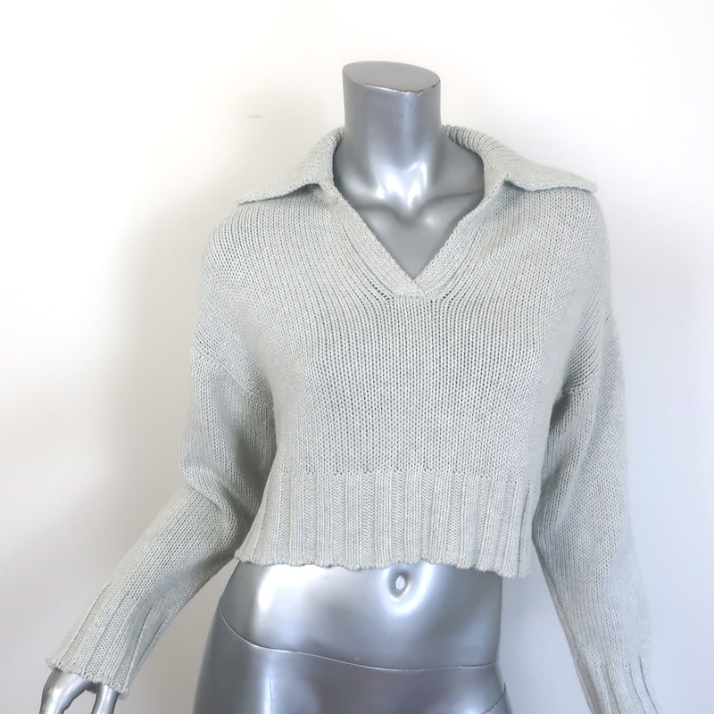 SABLYN Julie Collared Cropped Sweater Light Gray Cotton-Cashmere Size Small