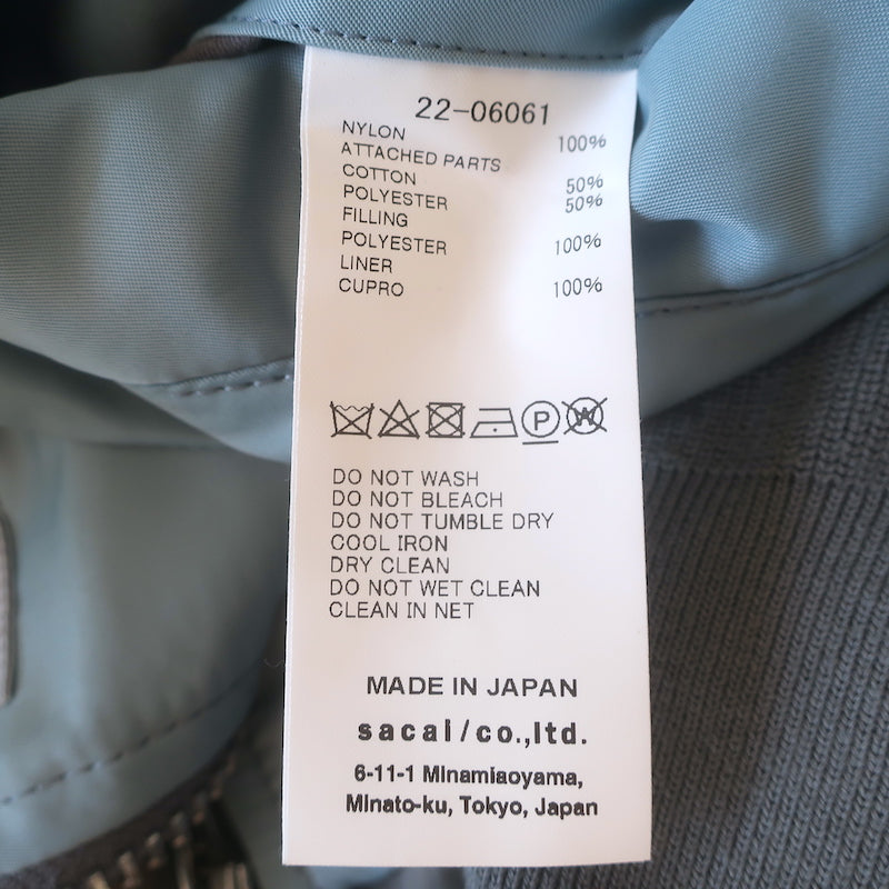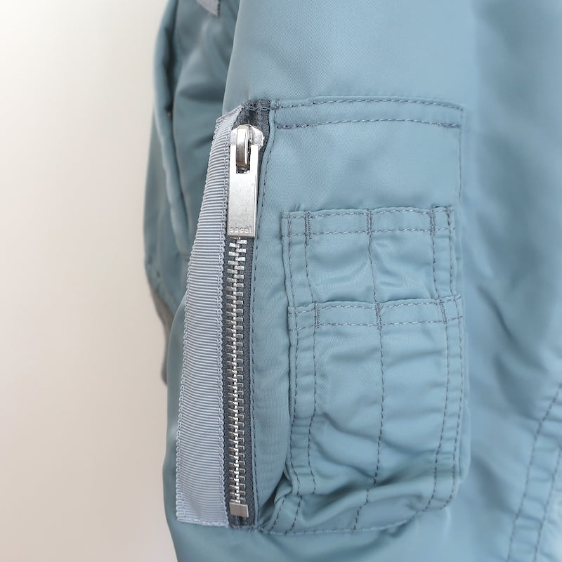 Sacai Cropped MA-1 Padded Bomber Jacket Light Blue Nylon Size 1