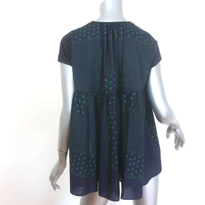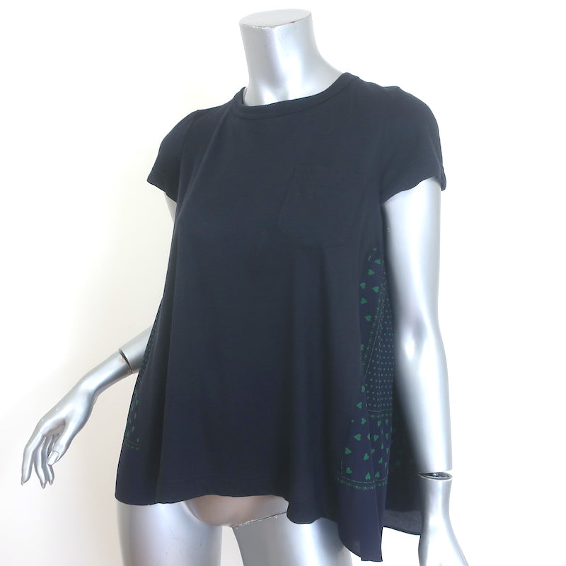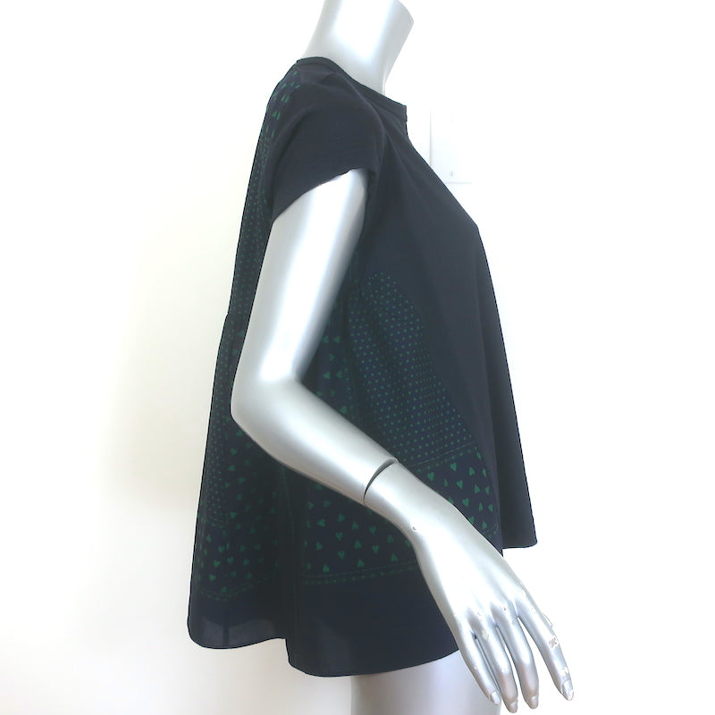 Sacai Luck Heart Print Tiered-Back Tee Black Linen Blend Size 3 Cap Sleeve Top Measurements