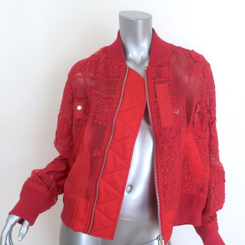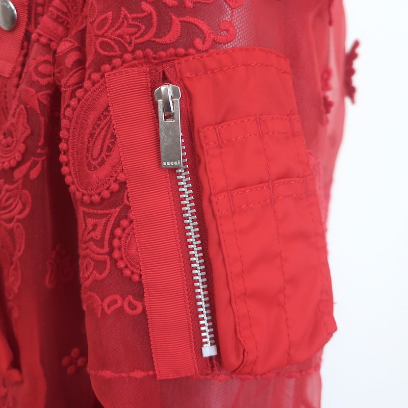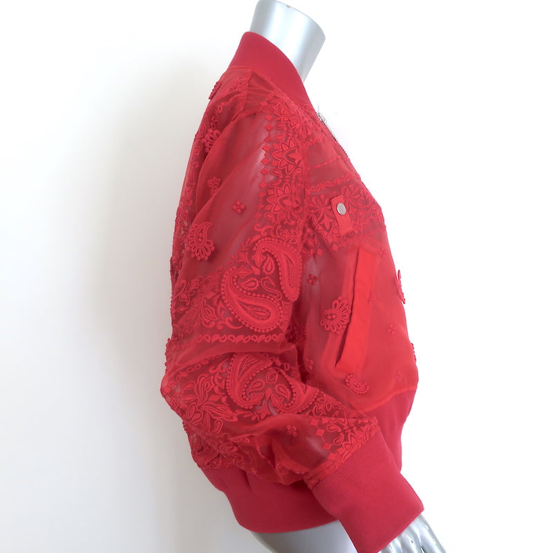 Sacai Paisley Lace-Embroidered Organza Bomber Jacket Red Size 2