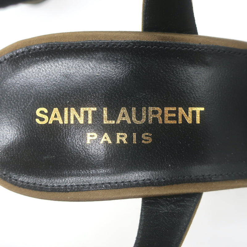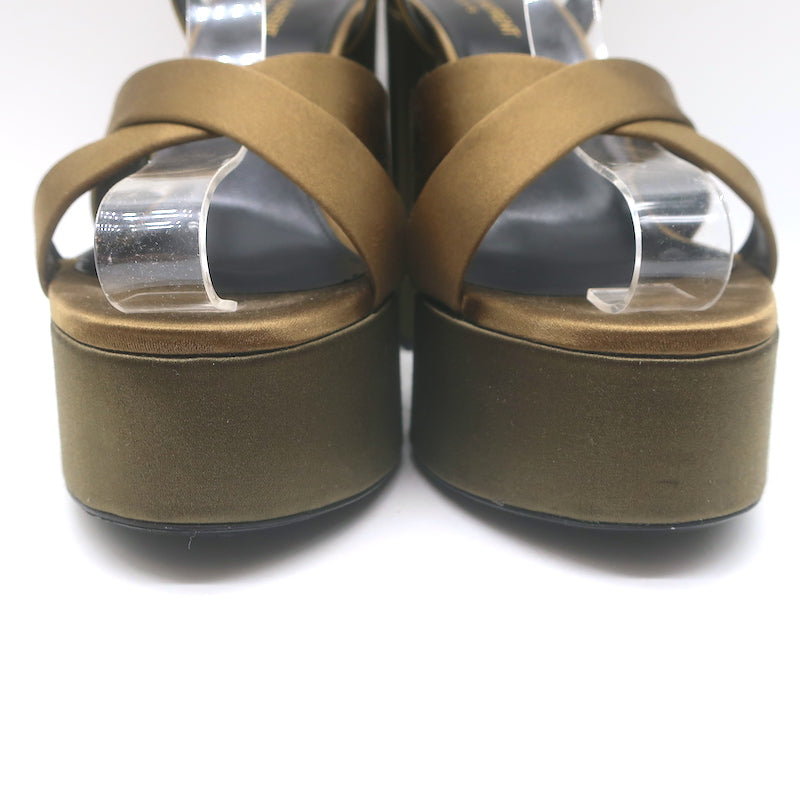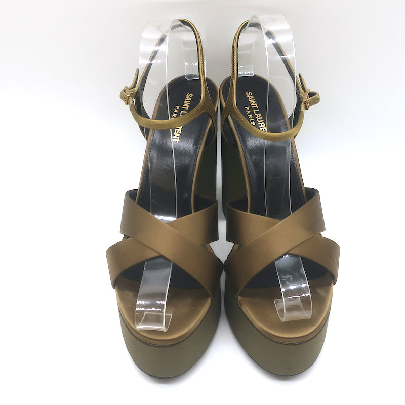 Saint Laurent Bianca 125 Crisscross Platform Sandals Olive Brown Satin Size 40
