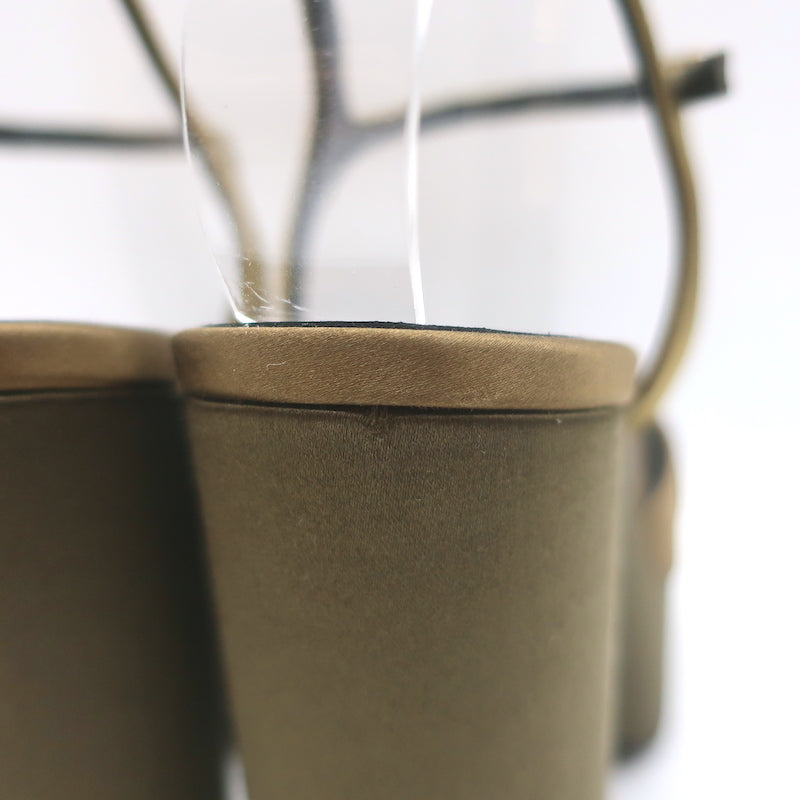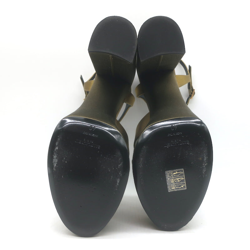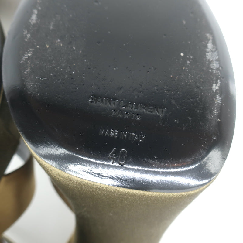 Saint Laurent Bianca 125 Crisscross Platform Sandals Olive Brown Satin Size 40 Measurements