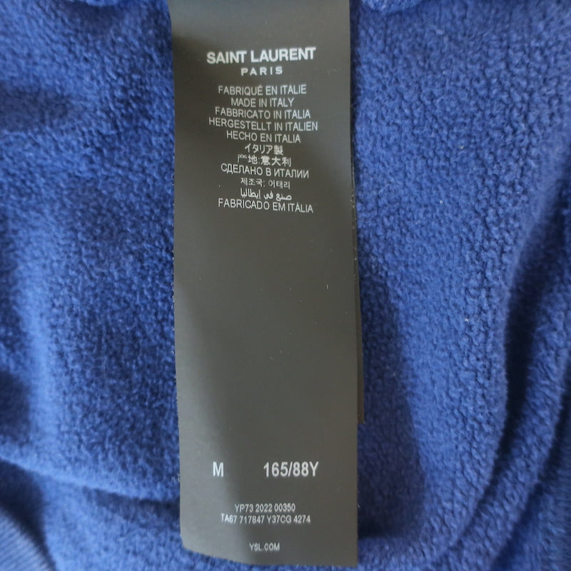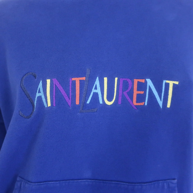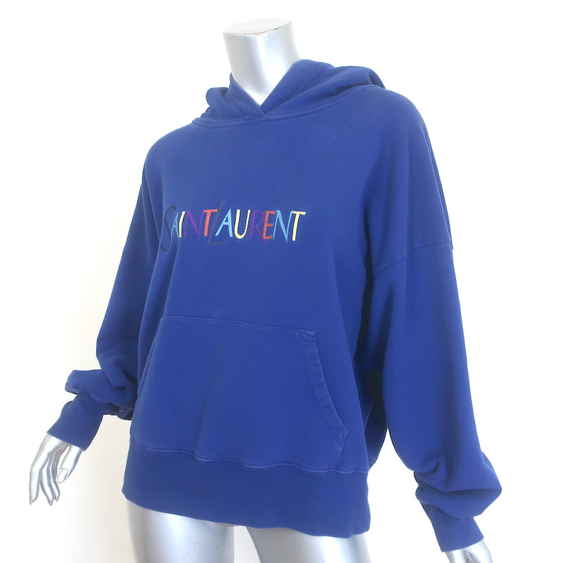 Saint Laurent Embroidered-Logo Oversized Hoodie Blue Cotton Size Medium