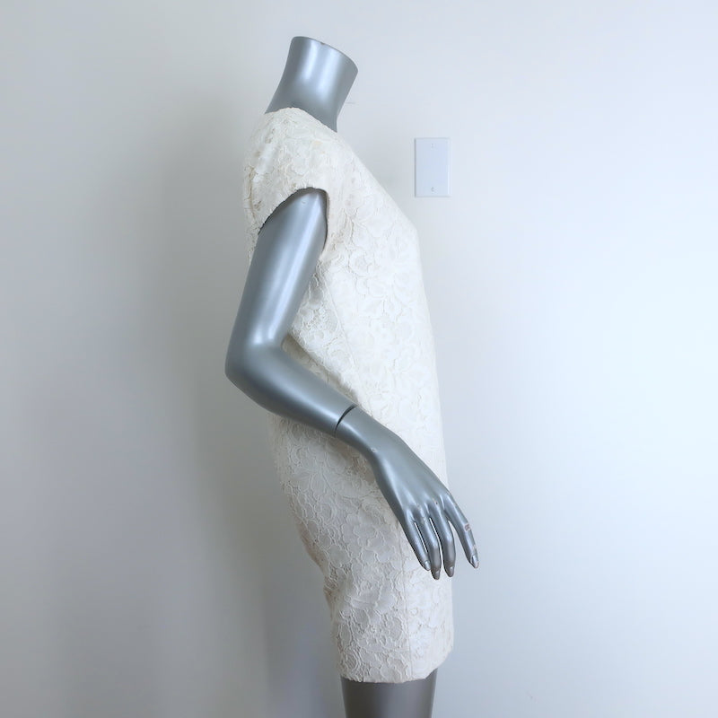 Saint Laurent Floral Lace Cap Sleeve Mini Shift Dress Cream Size 36