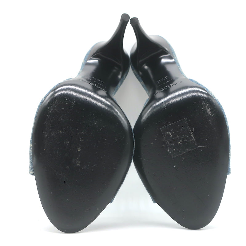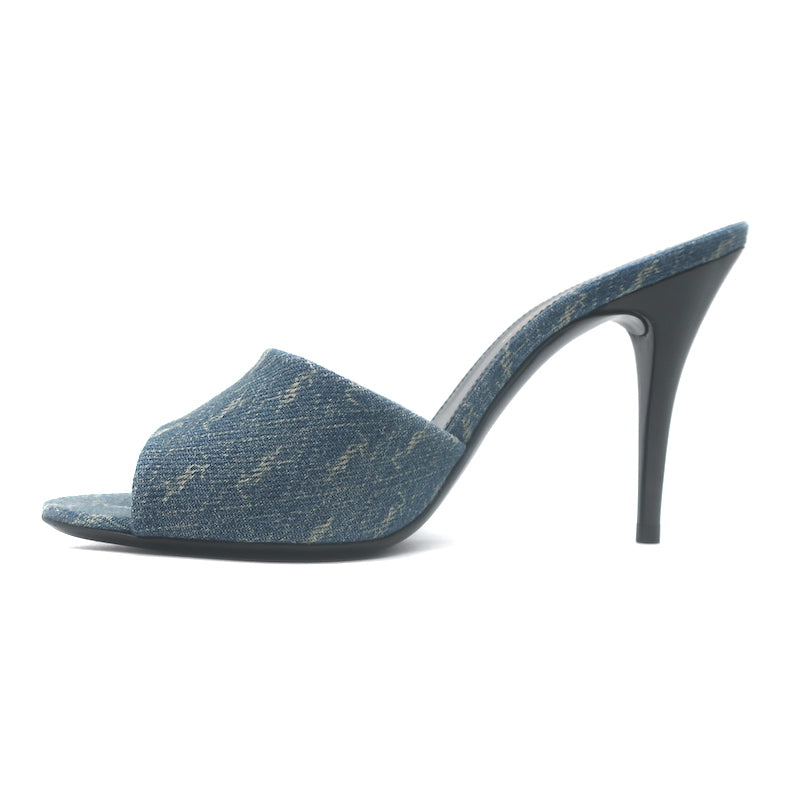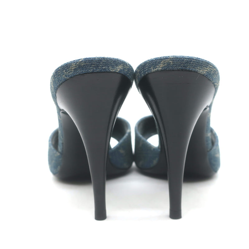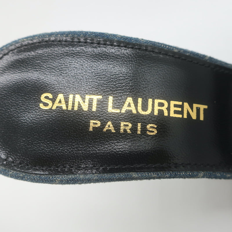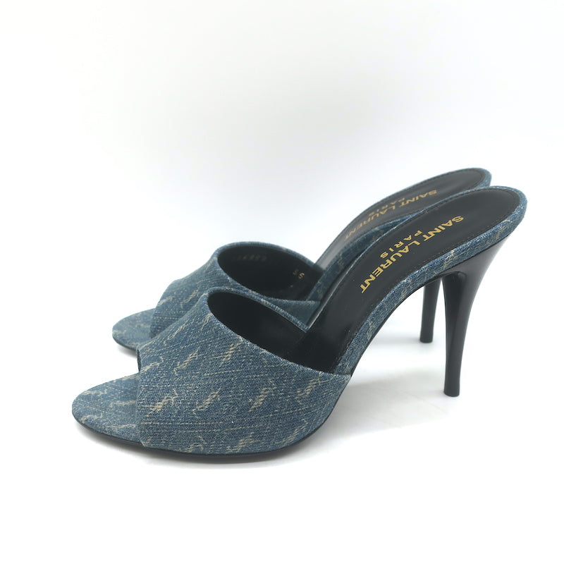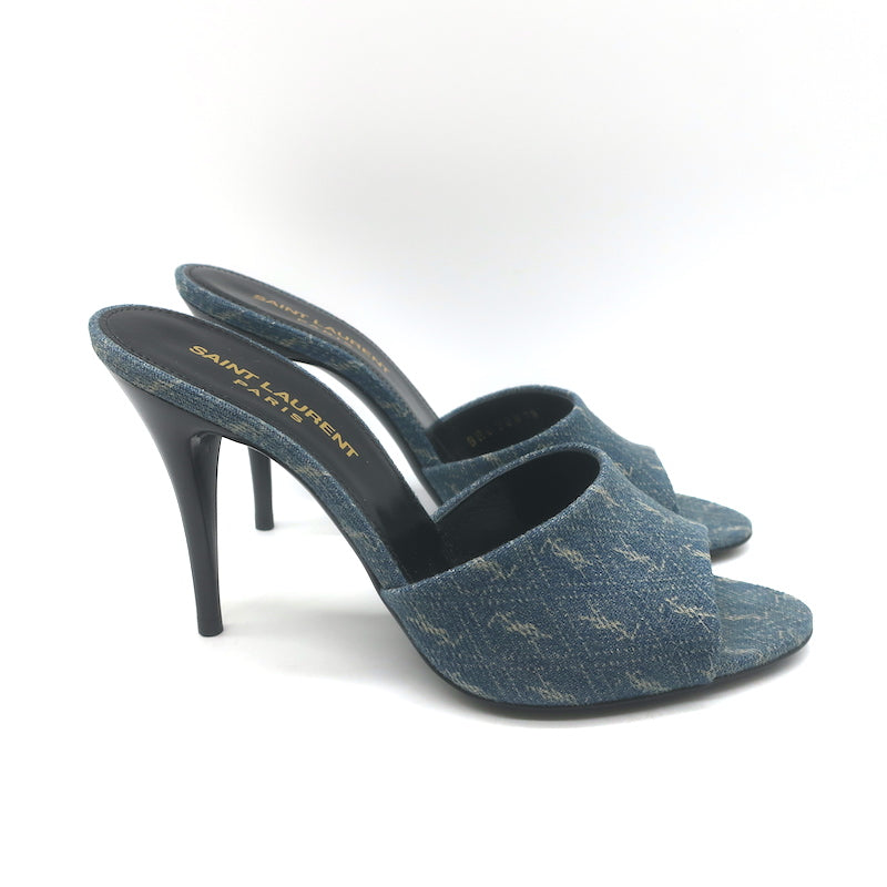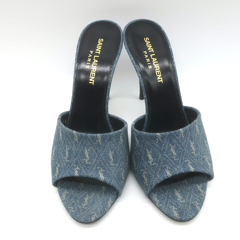Saint Laurent LA 16 Monogram Denim Mules Size 35.5 Open Toe Sandals
