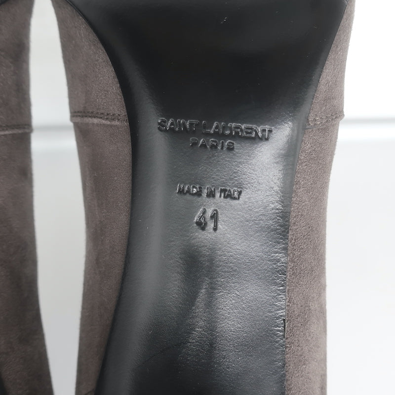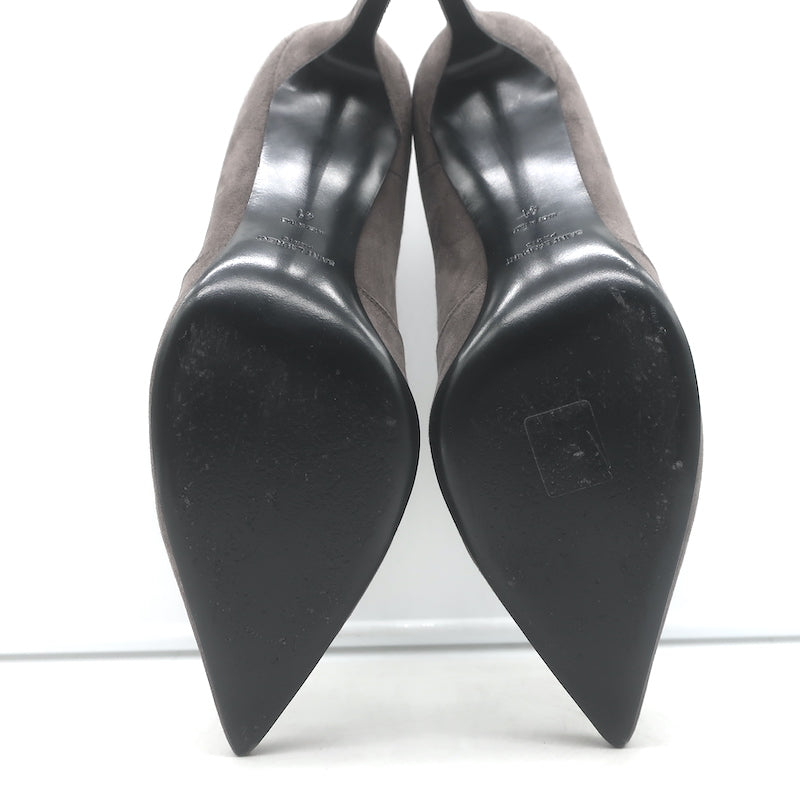 Saint Laurent Paris Pointed Toe Booties Dark Anthracite Suede Size 41 Measurements