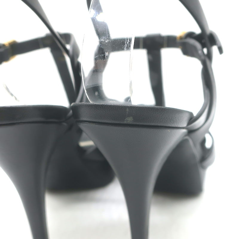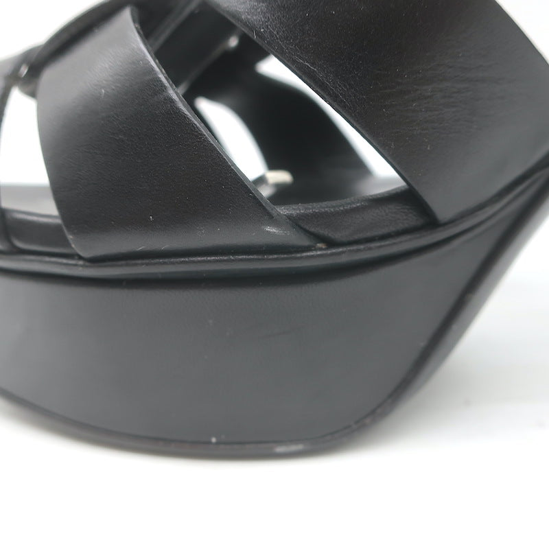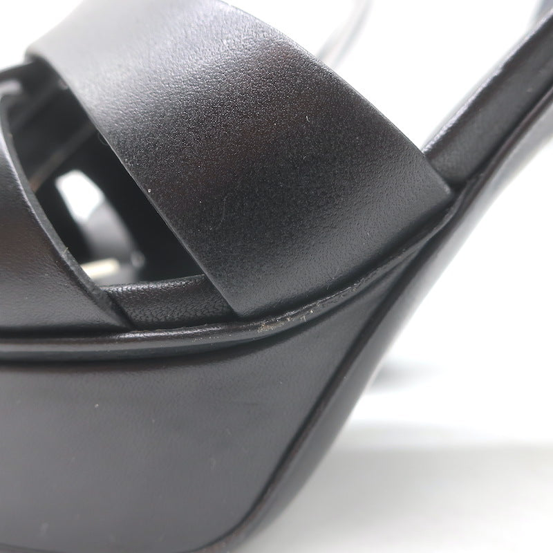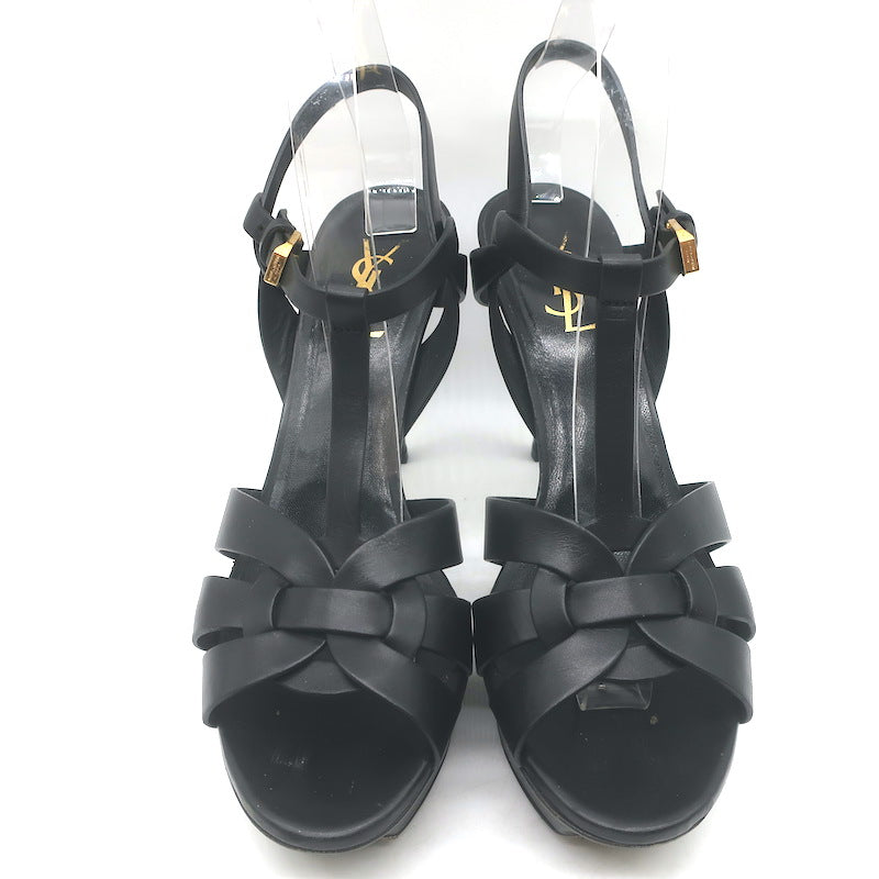 Saint Laurent Tribute 105 Platform T-Strap Sandals Black Leather Size 40