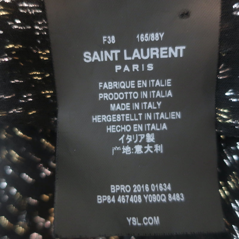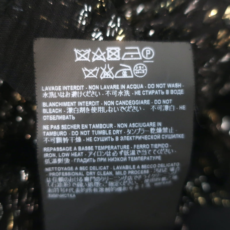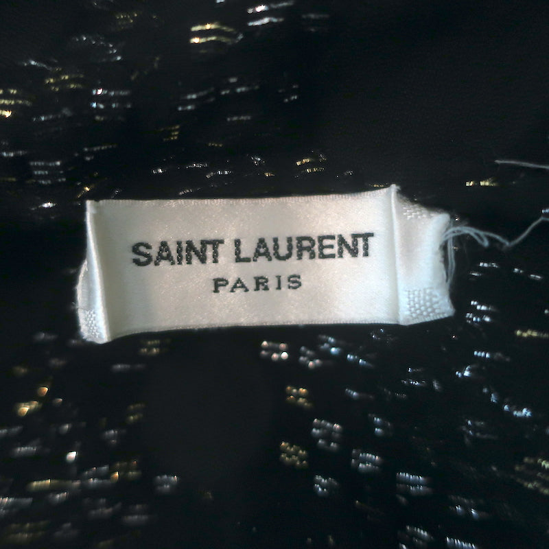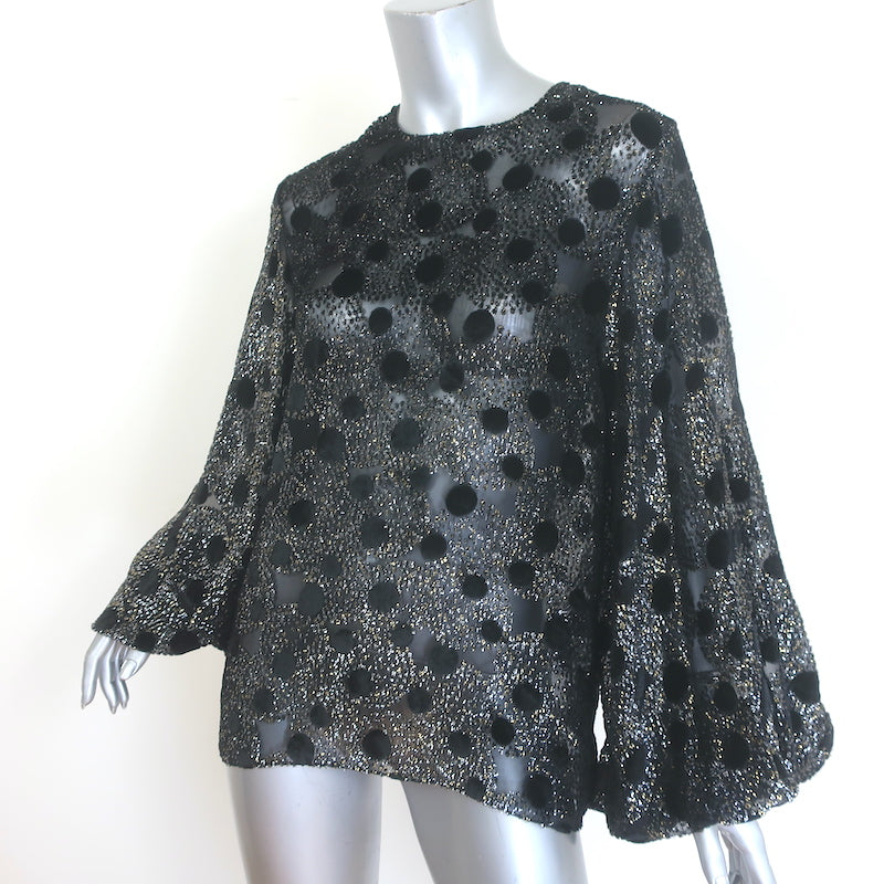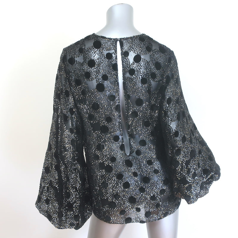 Saint Laurent Velvet Polka Dot Burnout Blouse Black & Silver Metallic Size 38