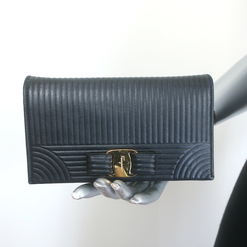 Salvatore Ferragamo Miss Vara Wallet on Chain Black Quilted Leather Crossbody