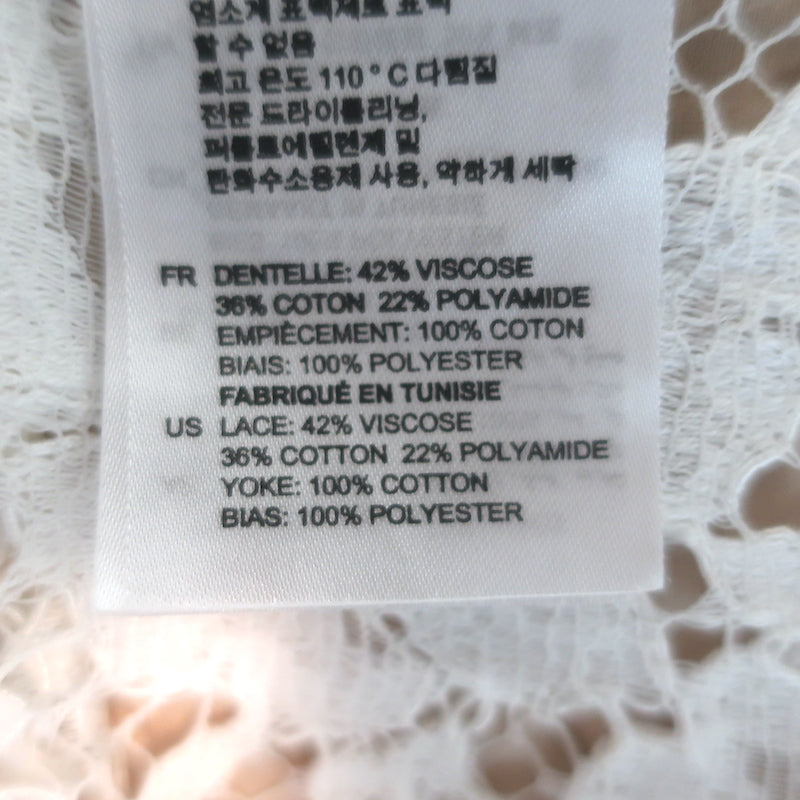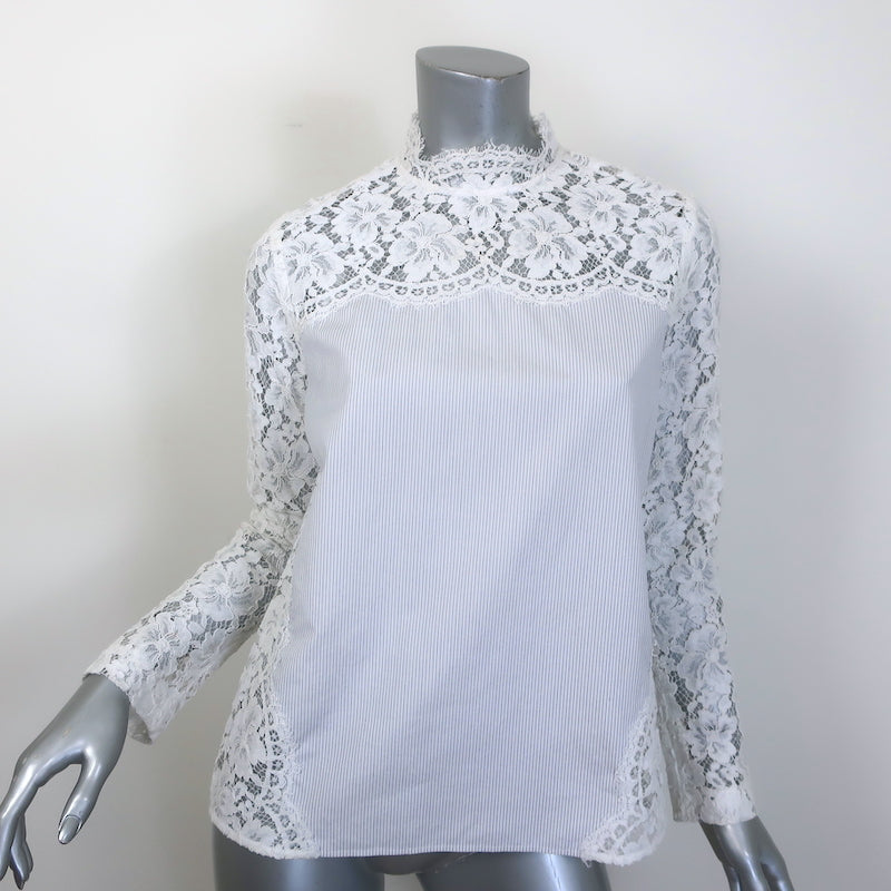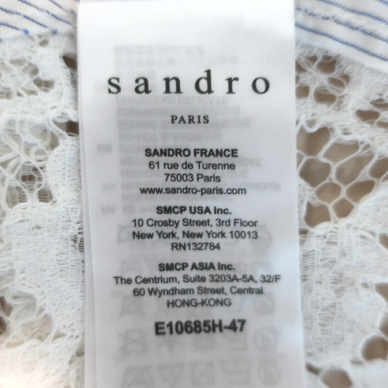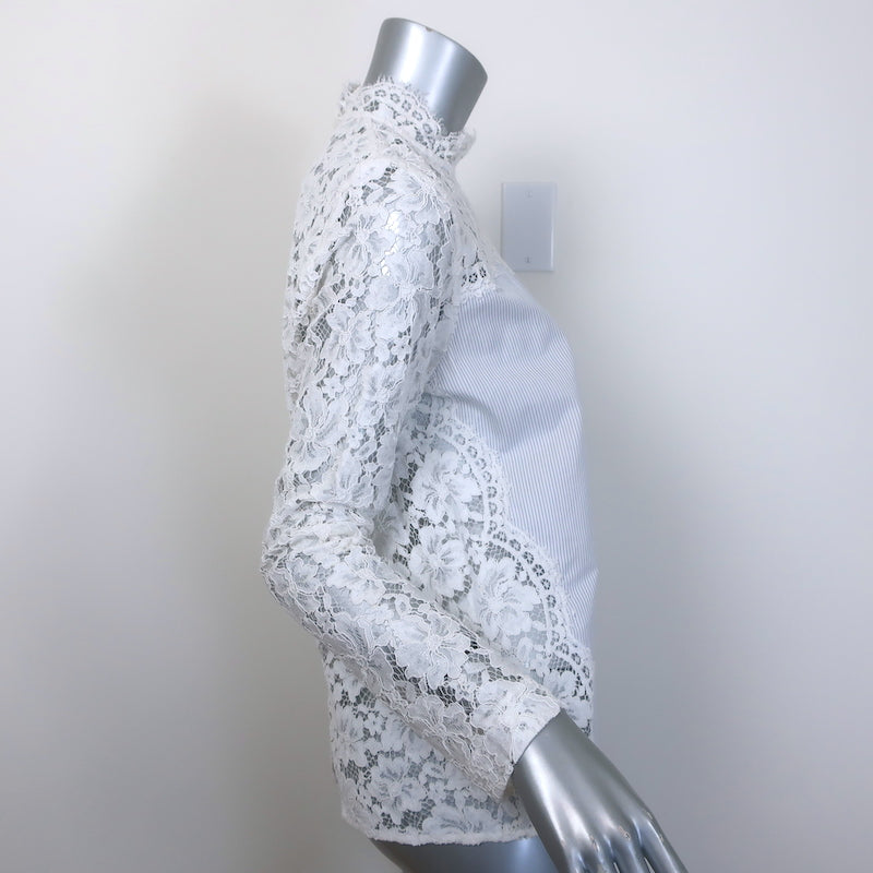 Sandro Striped Cotton-Paneled Lace Blouse White/Blue Size 2 Long Sleeve Top